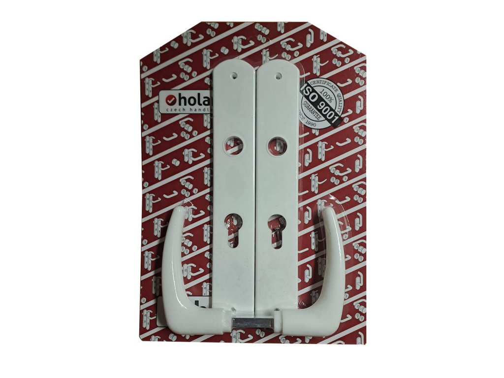 Dveřní klika s dlouhým štítkem s roztečí 72 mm pro cylindrický (PZ) zámek.