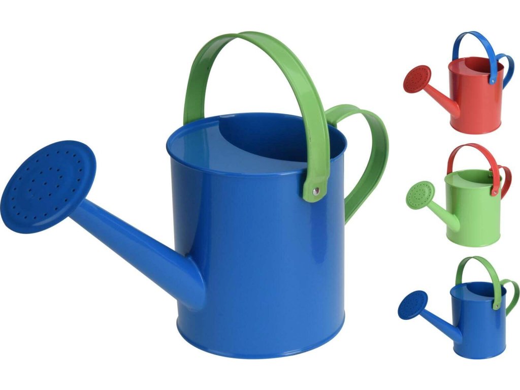 Dětská kovová zalévací konvička je praktickým pomocníkem pro děti, které chtějí pomáhat se zaléváním na zahradě.