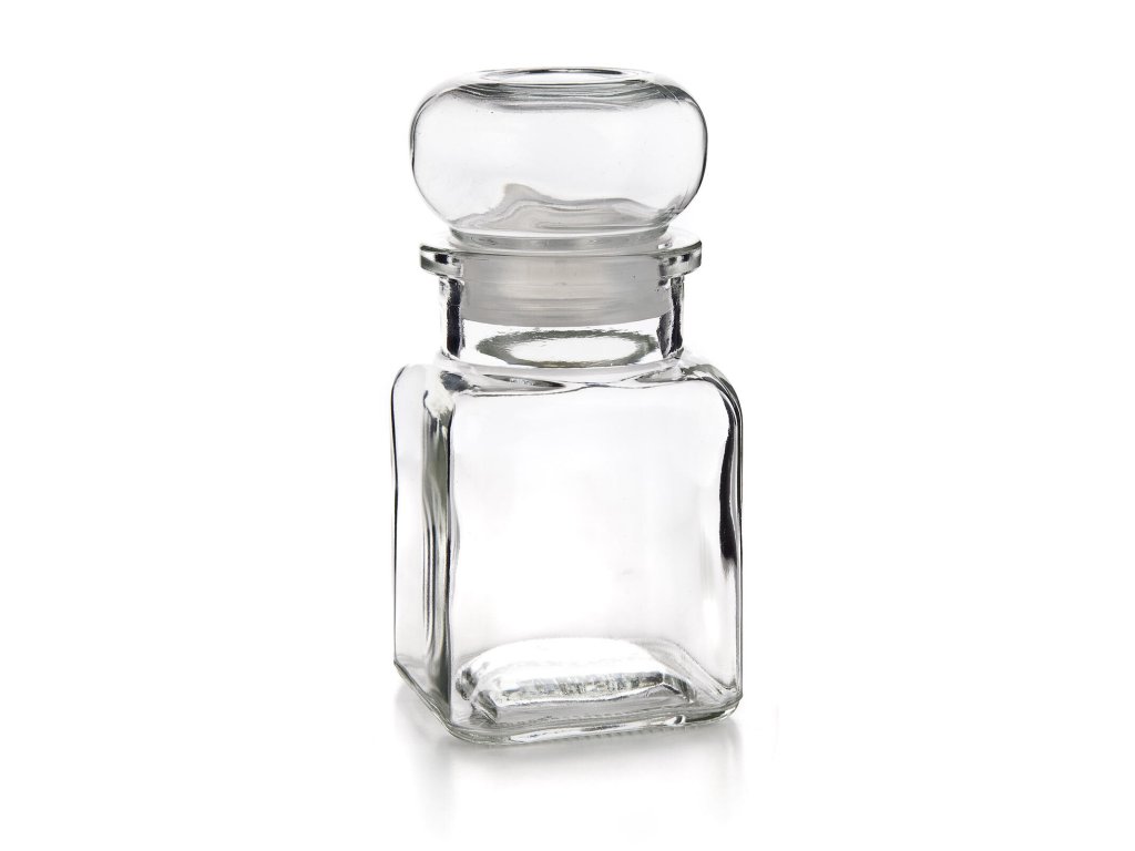 Kořenka 150 ml, hranatá, s uzávěrem, skleněná.