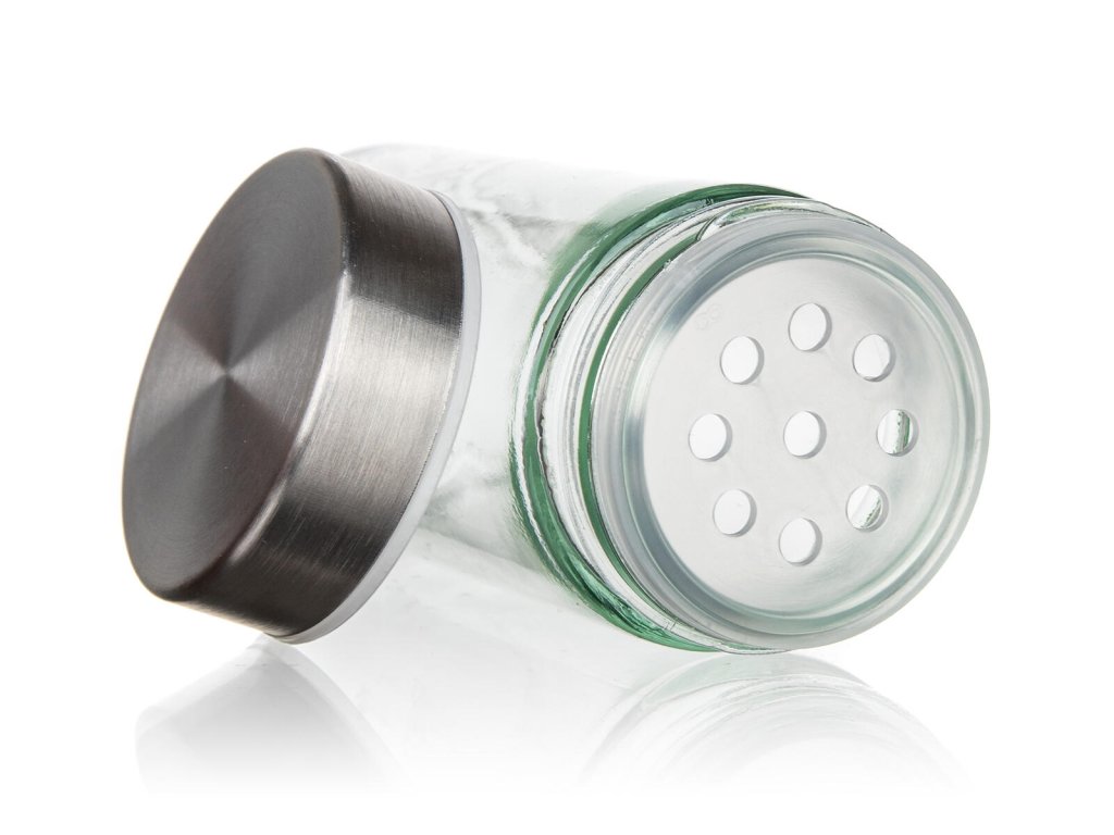 Kořenka AKCENT skl. + kov. (12 ks), s otočným stojánkem nerez.rozměry jedné kořenky s víčkem: 4,4 x 9,5 cm