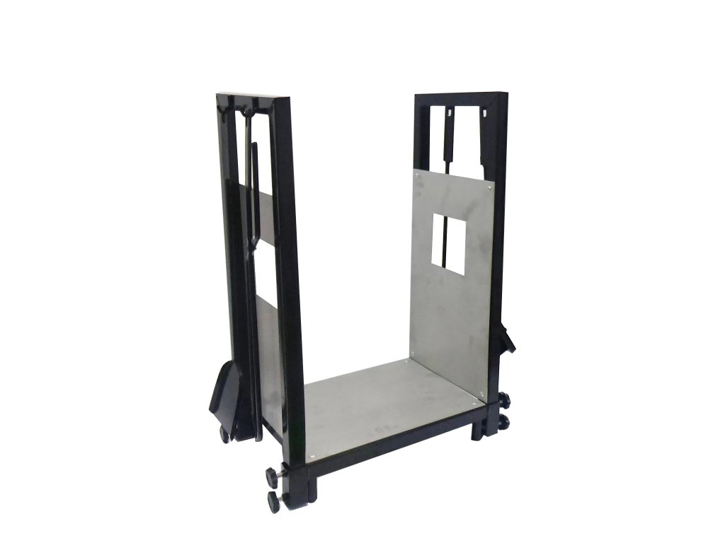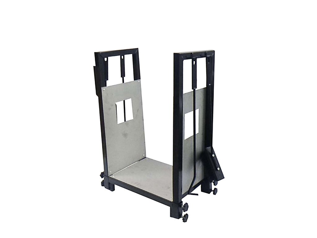 Krbové nářadí s košem na dřevo, který je praktickým pomocníkem pro přenos a uskladnění dřeva u krbu.