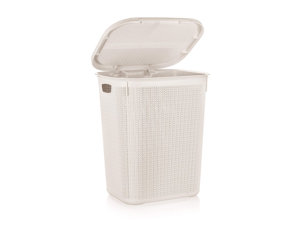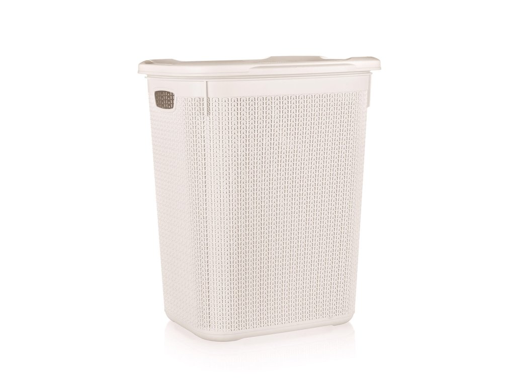 Plastový koš s víkem, o objemu 50 l, v ratanovém provedení, barva krémová.