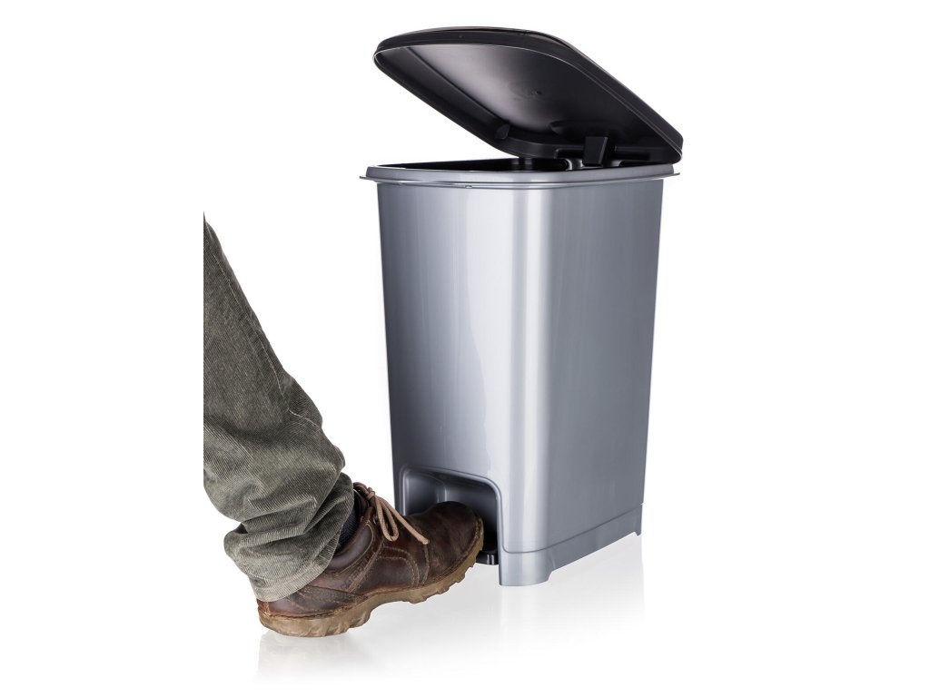 Odpadkový nášlapný koš STEP, v šedé barvě, je elegantní a praktický bezdotykový koš na odpadky.