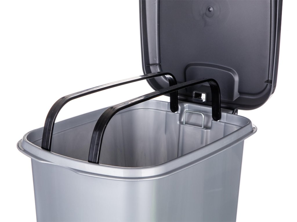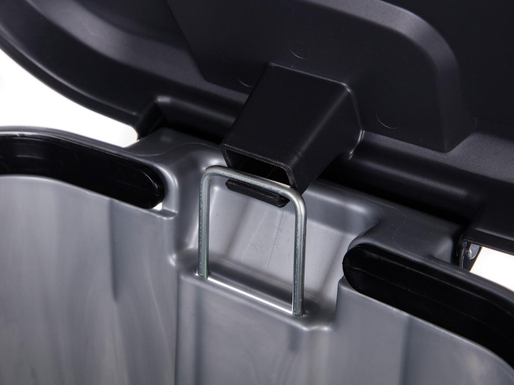 Koš má nášlapný systém na otevírání víka pro hygienickou manipulaci.