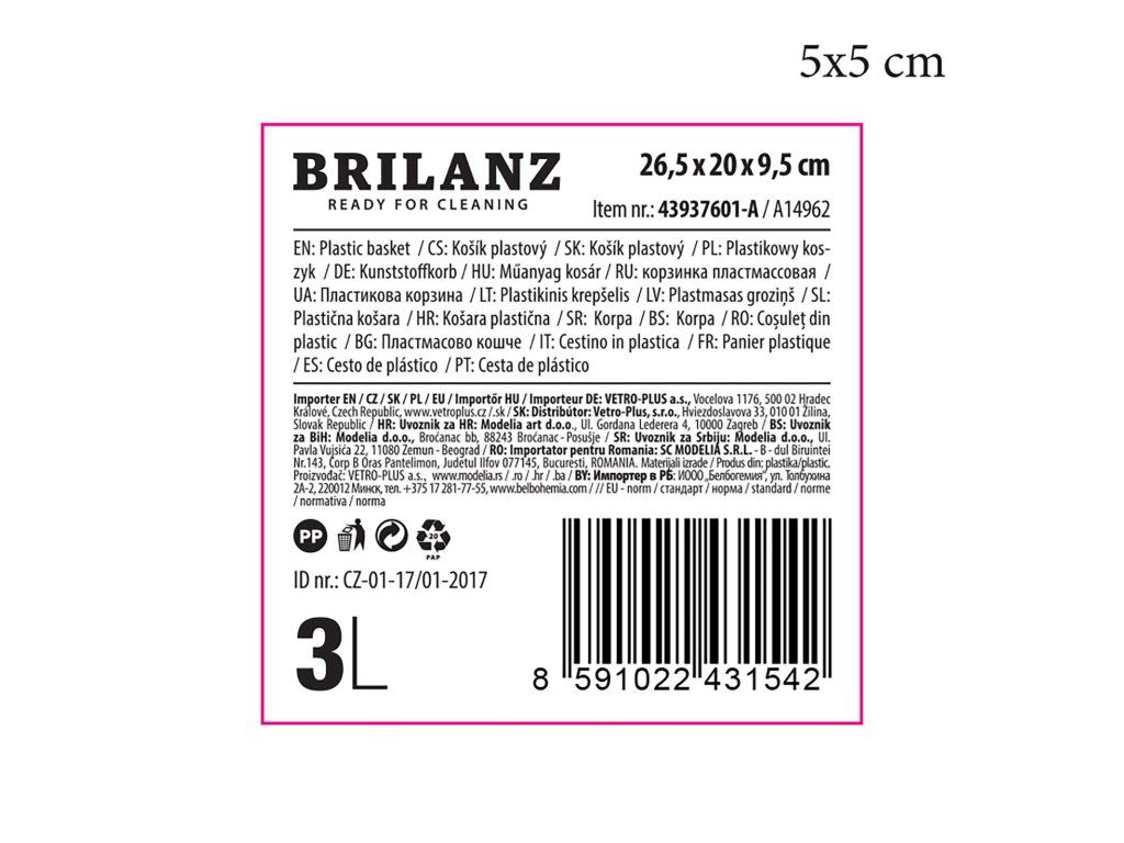 rozměry: 26,5 x 20 x 9,5 cm