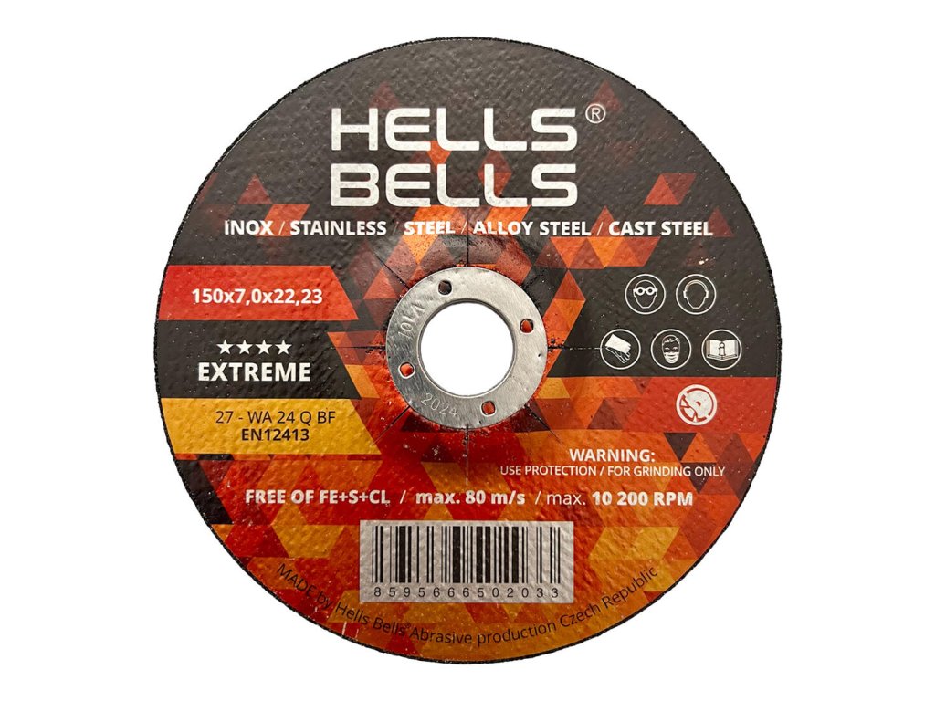 Brusné kotouče Hells Bells s bakelitovým pojivem jsou vyrobeny z prémiového korundového zrna, které je zárukou agresivního brusu a dlouhé životnosti.