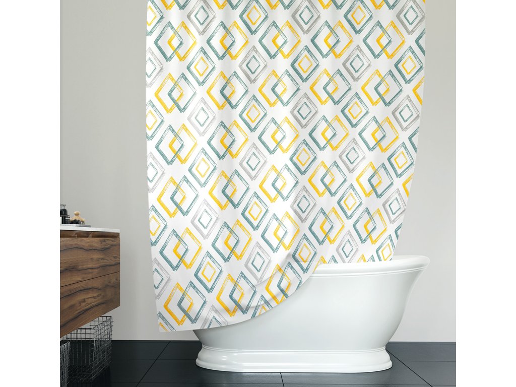 Koupelnový závěs o rozměru 180x200cm je vyroben z kvalitní polyesterové tkaniny, dlouhodobě voděodolné a bude ozdobou každé koupelny.