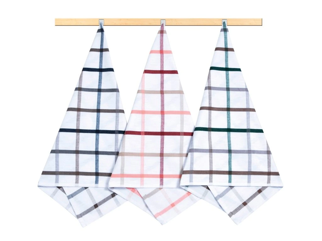 Kuchyňské utěrky jsou vyrobeny ze 100% bavlny o plošné gramáži 240g/m2. Jsou dostatečně velké a velmi dobře savé, v různých barevných variacích a dezénech. 100% bavlna zajišťuje dostatečnou savost použitého materiálu. Balení obsahuje tři kusy utěrek, barevnost utěrek může být odlišná oproti vyobrazení.