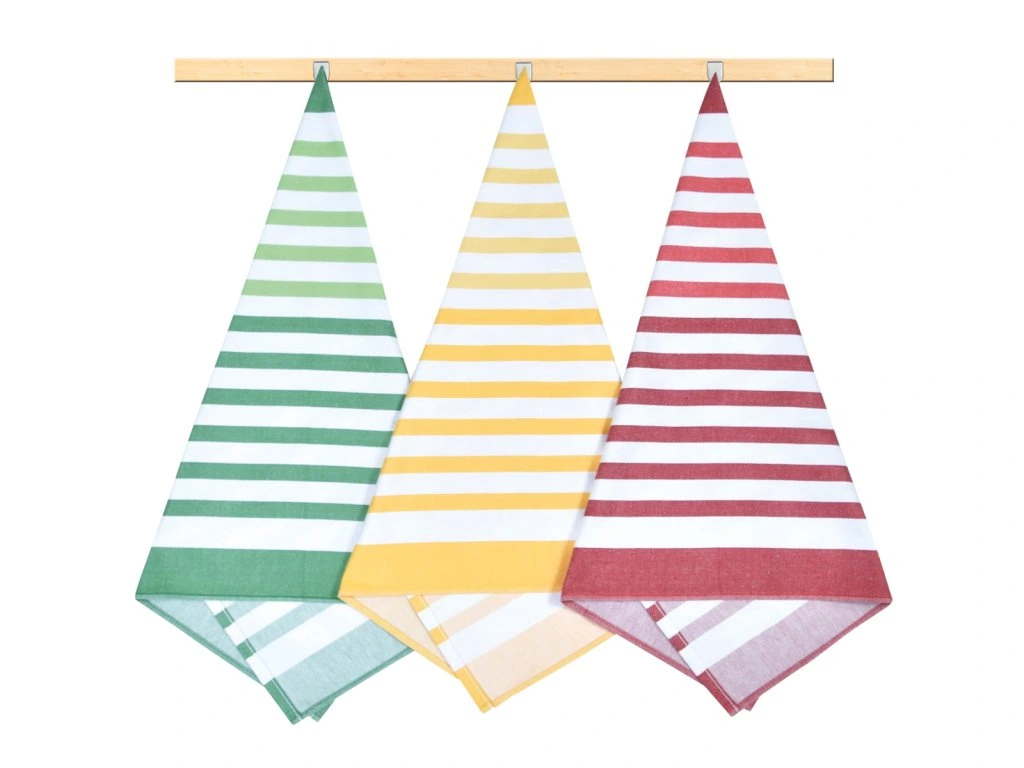 Kuchyňské utěrky jsou vyrobeny ze 100% bavlny o plošné gramáži 240g/m2. Jsou dostatečně velké a velmi dobře savé, v různých barevných variacích a dezénech. 100% bavlna zajišťuje dostatečnou savost použitého materiálu. Balení obsahuje tři kusy utěrek, barevnost utěrek může být odlišná oproti vyobrazení.