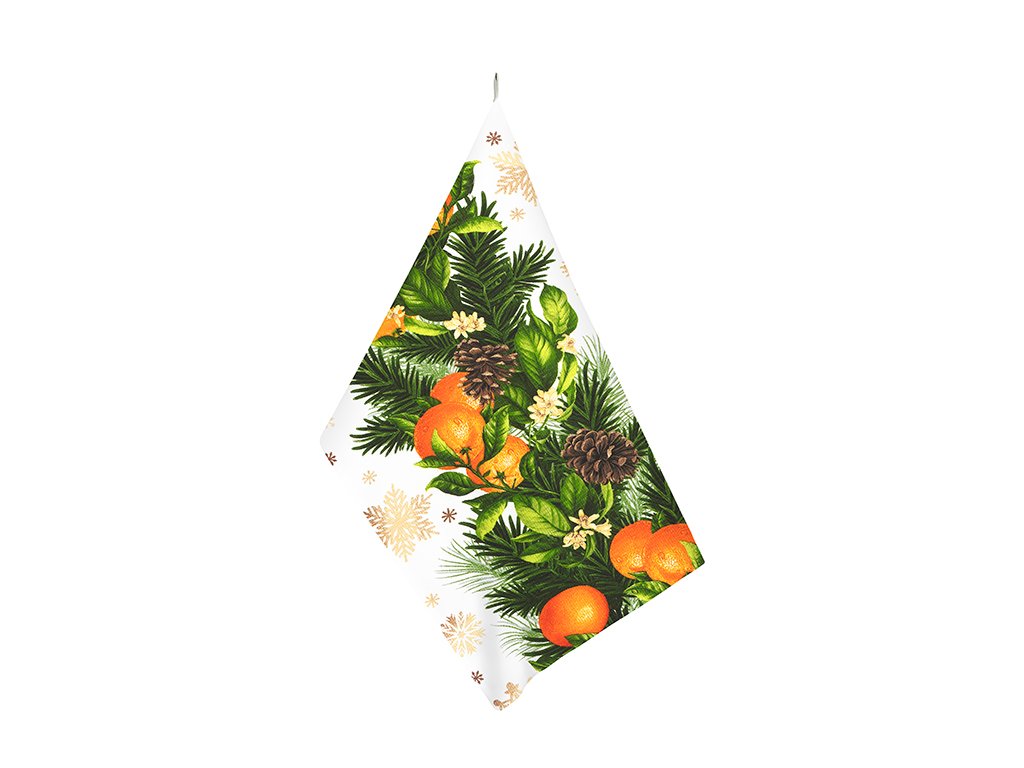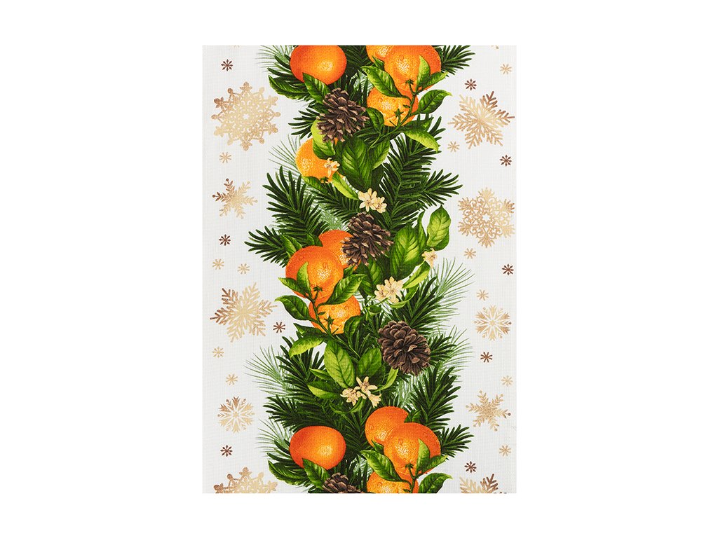 Kuchyňská utěrka 50x70cm s vánočním motivem jehličí a pomeranče