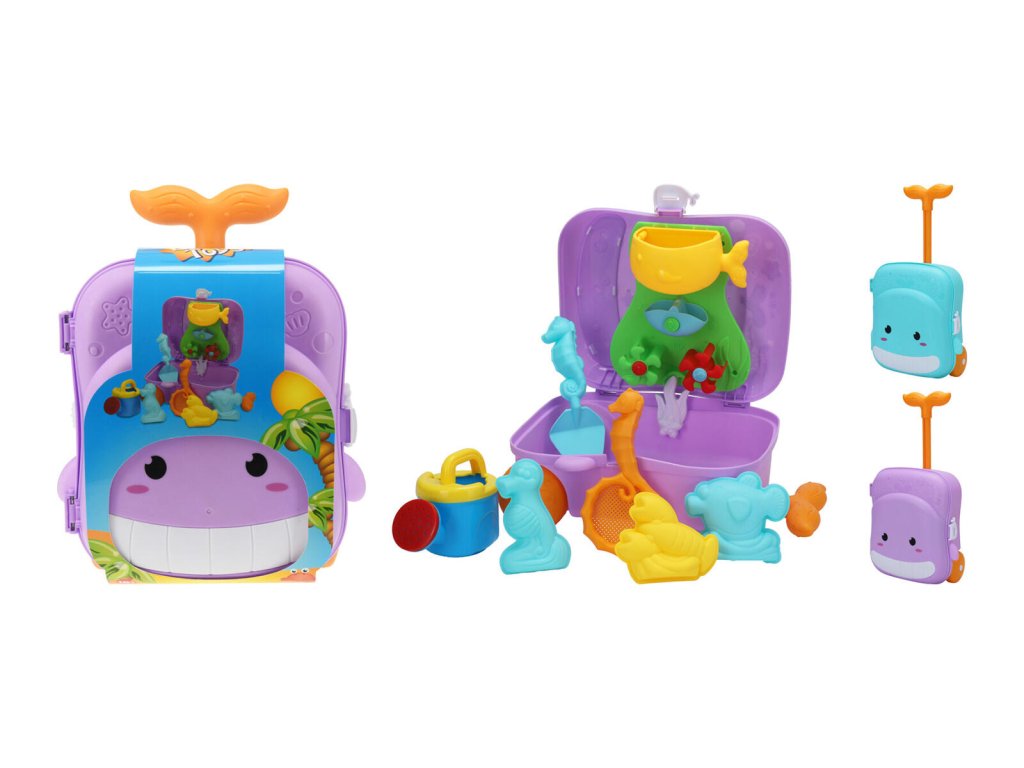 Dětský kufřík, který v sobě skrývá pomůcky na písek, je úžasným společníkem na výlet k vodě.