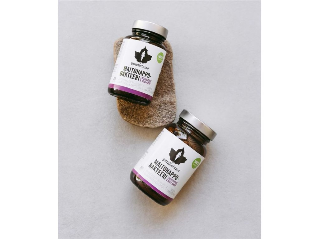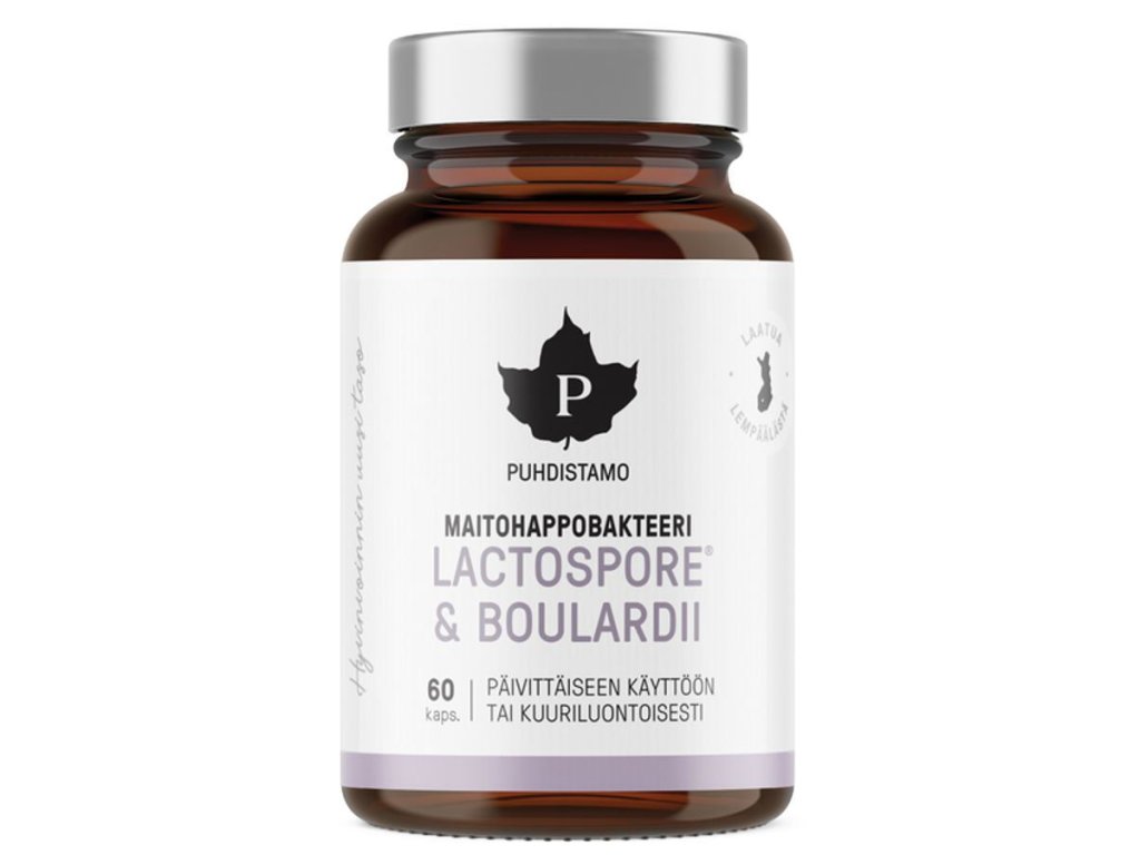 Puhdistamo Lactic Acid Bacteria + Boulardii je efektivní kombinací probiotických kultur (kvasinek) Saccharomyces boulardii značky Lactospore® a kultur Bacillus coagulans značky Lynside®.