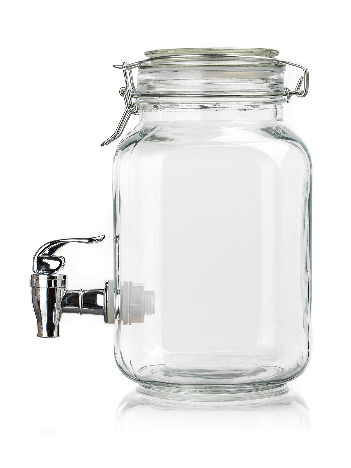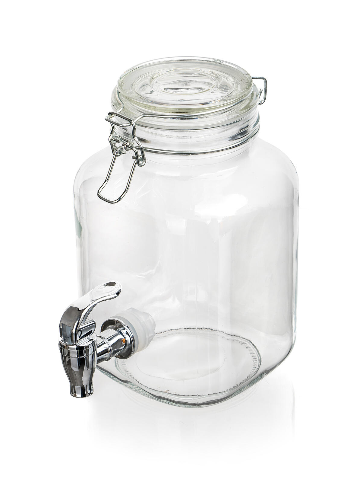 Láhev 2200 ml, skleněná, s kohoutkem, víčko s pákovým uzávěrem.