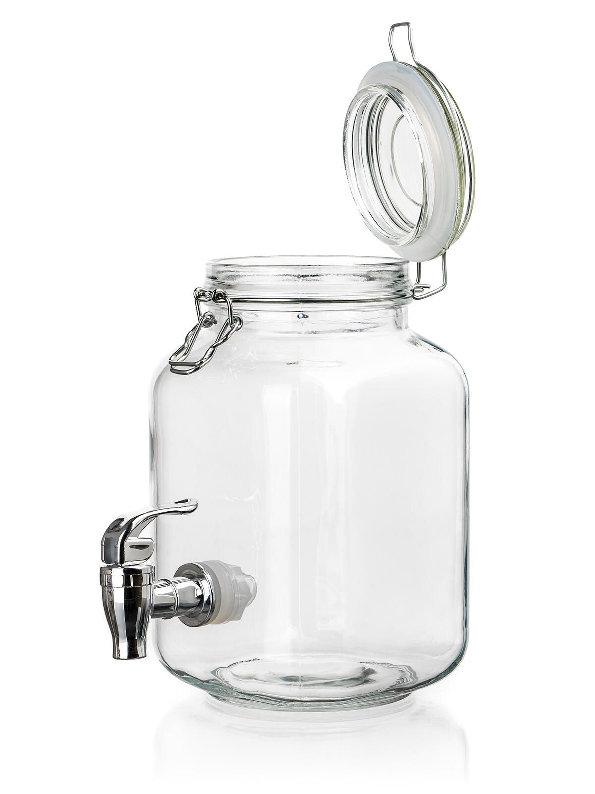 Zásobník je vyroben z kvalitního čirého skla a je opatřen praktickým plastovým kohoutkem pro dávkování nápojů.