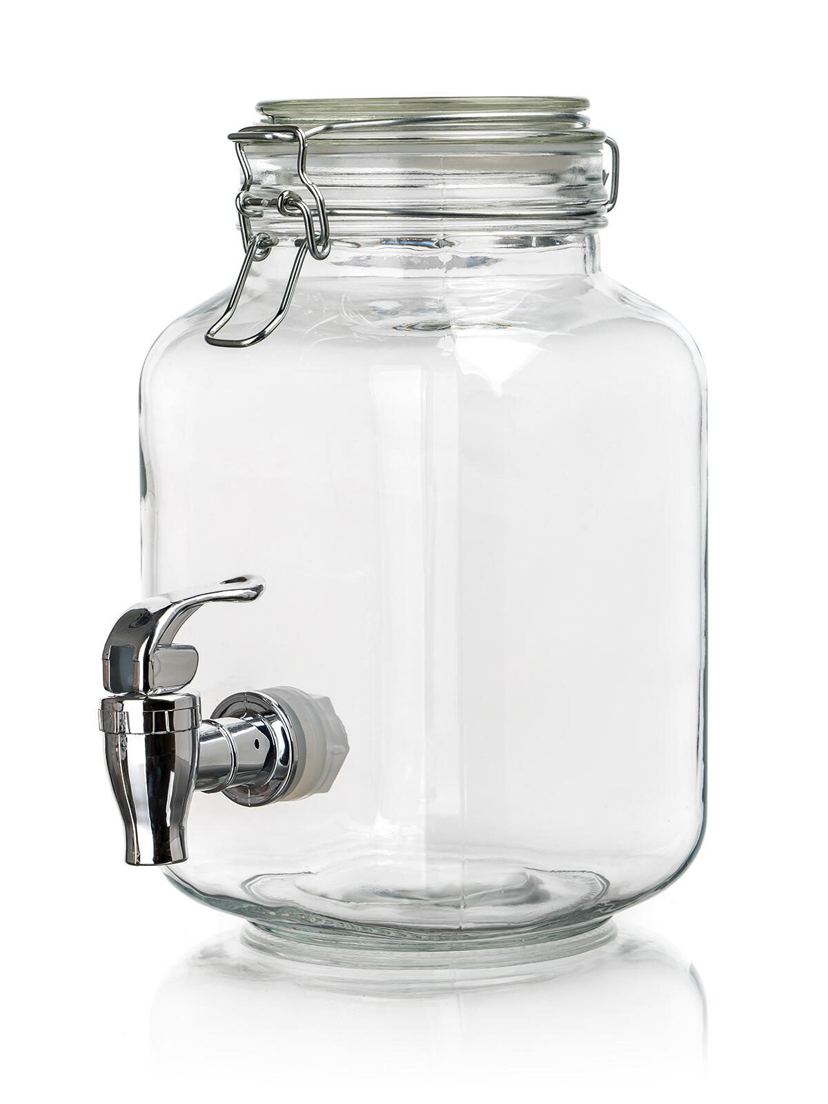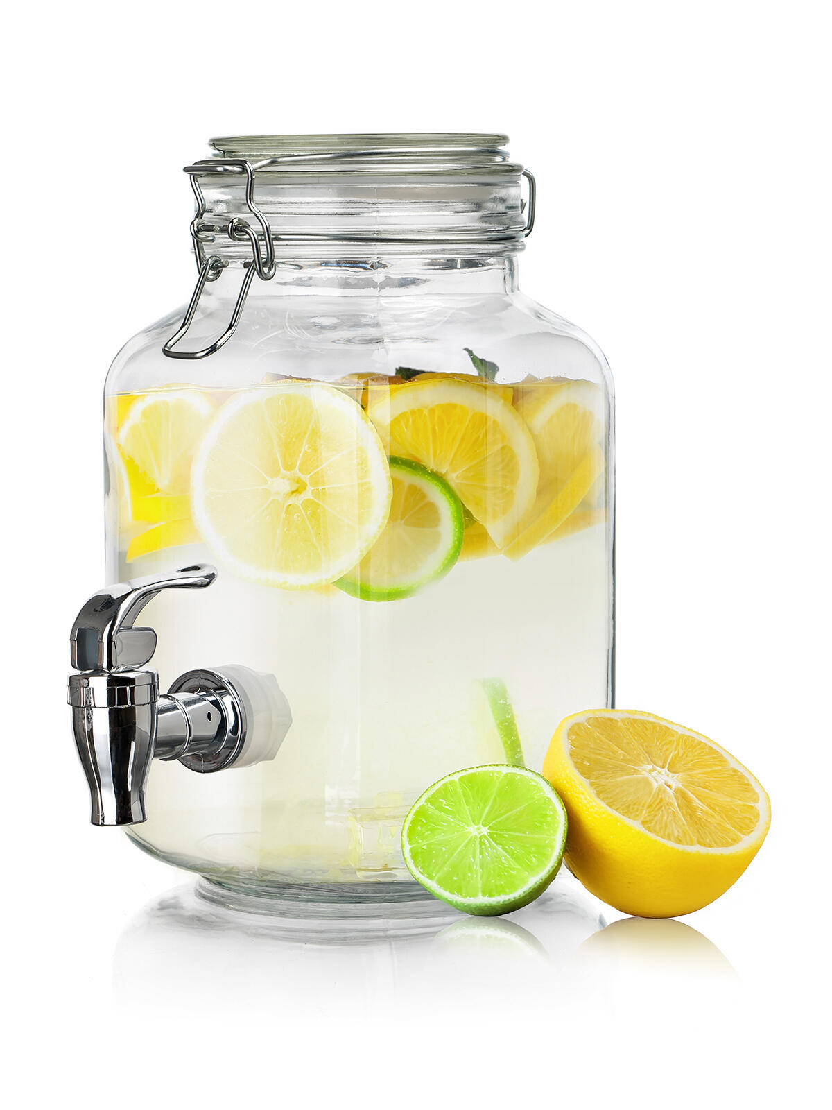 Skleněný zásobník na nápoje VICTA, o objemu 2,2 l, slouží k servírování osvěžujících nápojů na oslavách a letních párty.