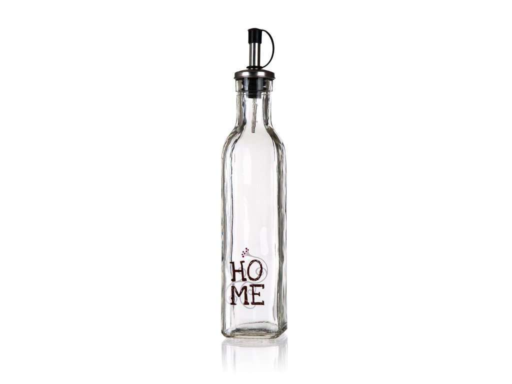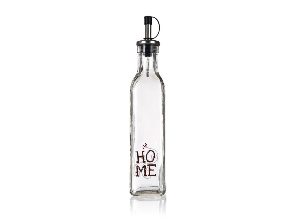 Láhev na olej s dekorem HOME hranatého tvaru, vyrobená ze skla, je ideální pomocník do kuchyně.