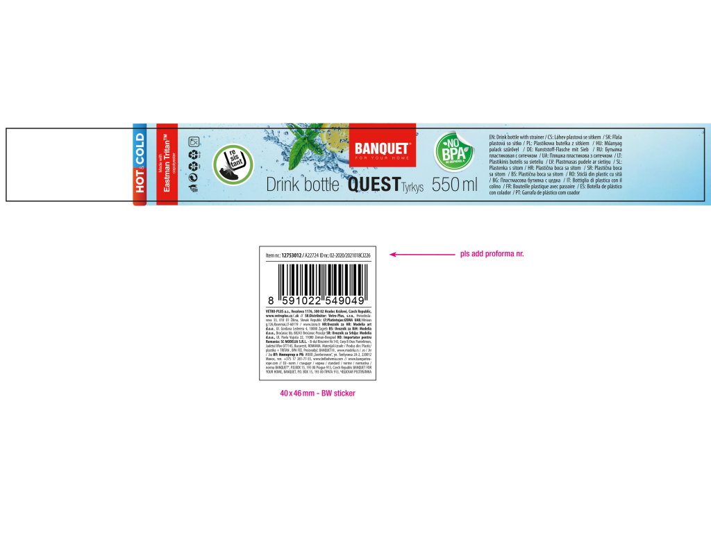 Láhev na pití 550 ml, QUEST, tritan TYRK.