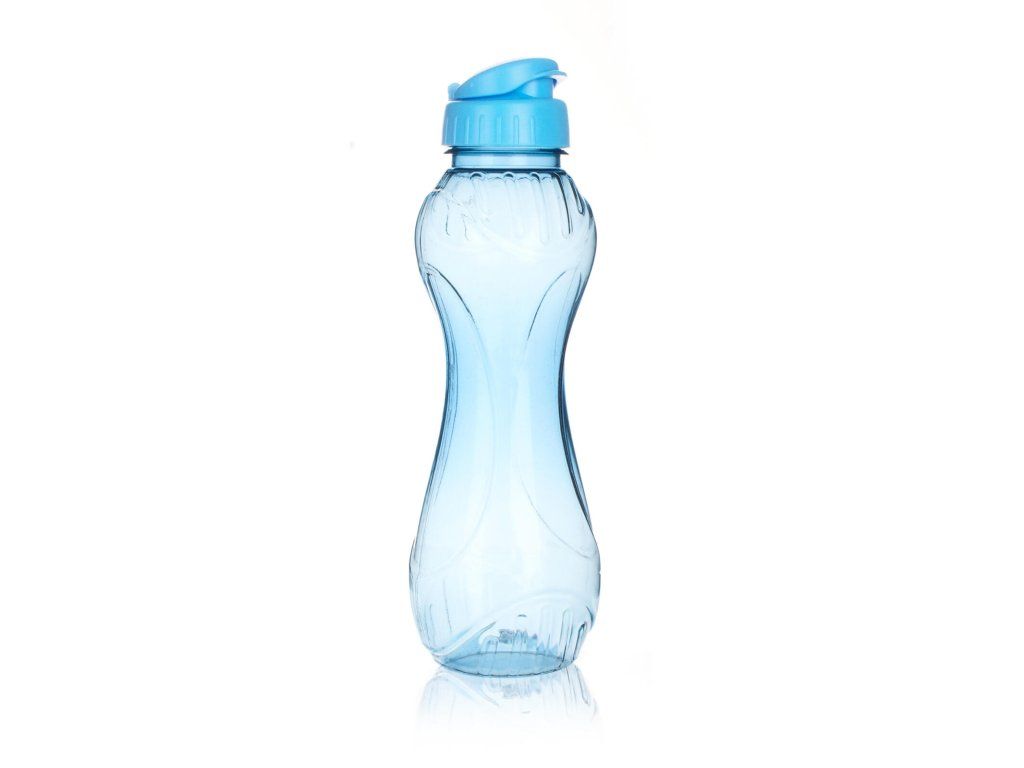 Plastová láhev TREND, v modré barvě, je ideální na výlety, do školy a sport.