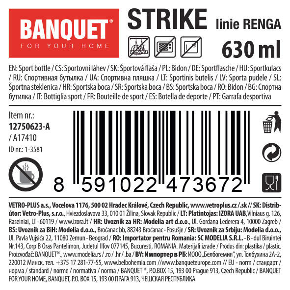 Láhev na pití 630 ml, STRIKE, PH RŮŽ.