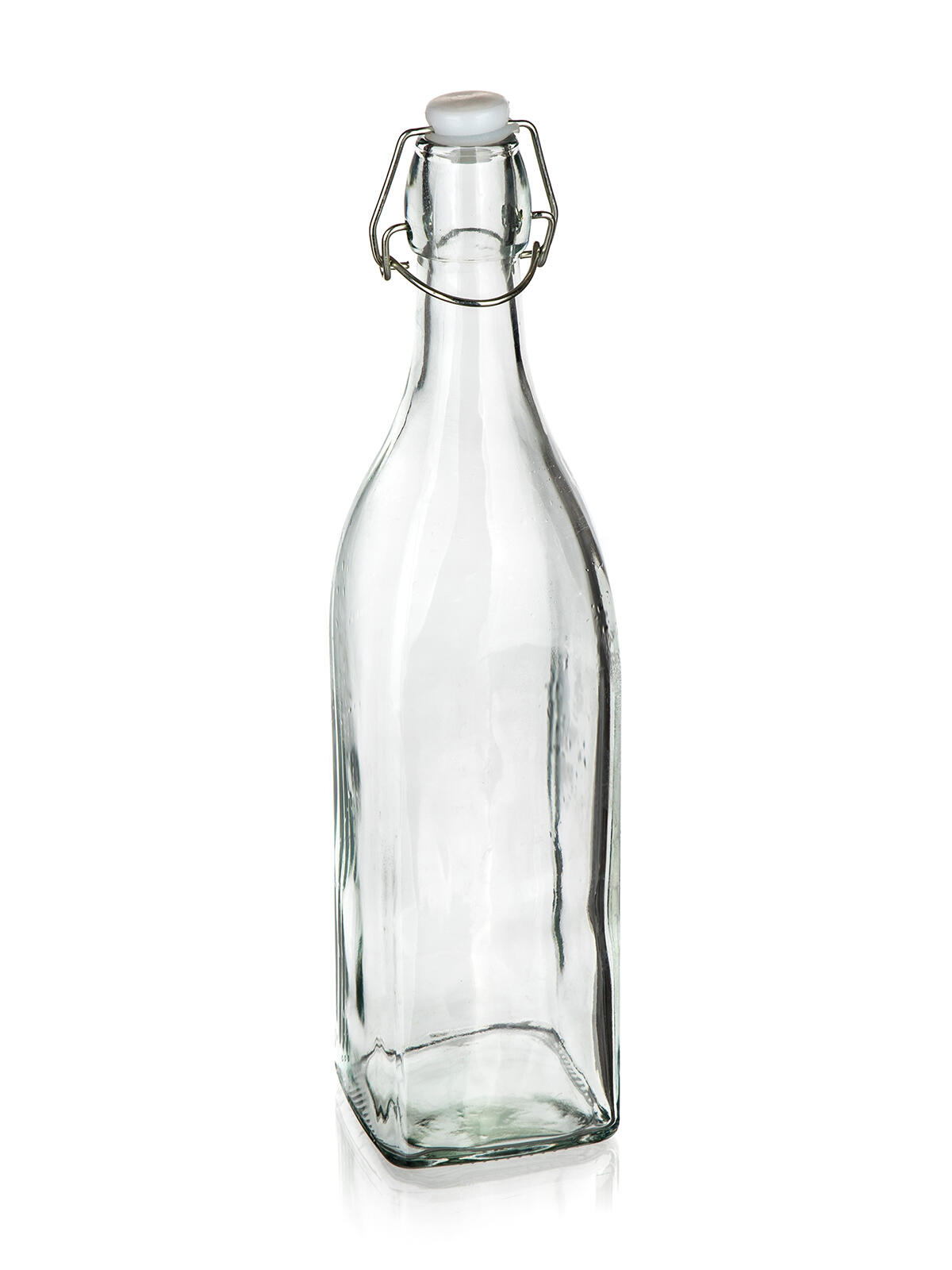 Láhev s pákovým uzávěrem, 950 ml, hranatá, skleněná, YARA.