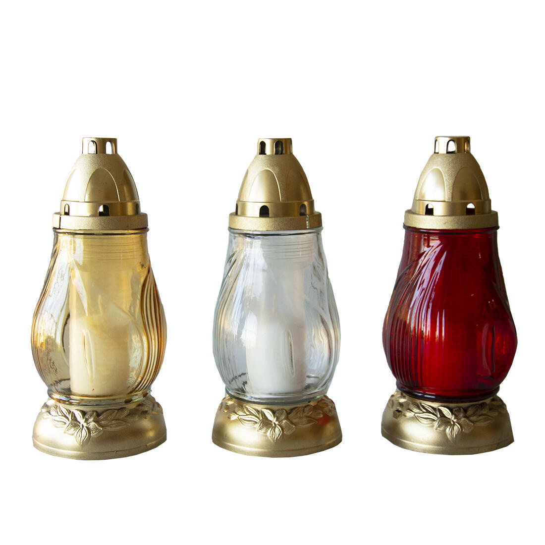 Hřbitovní lampa, sklo, 24 cm, 80 g, hoří 28 hod, paraf. mix barev.