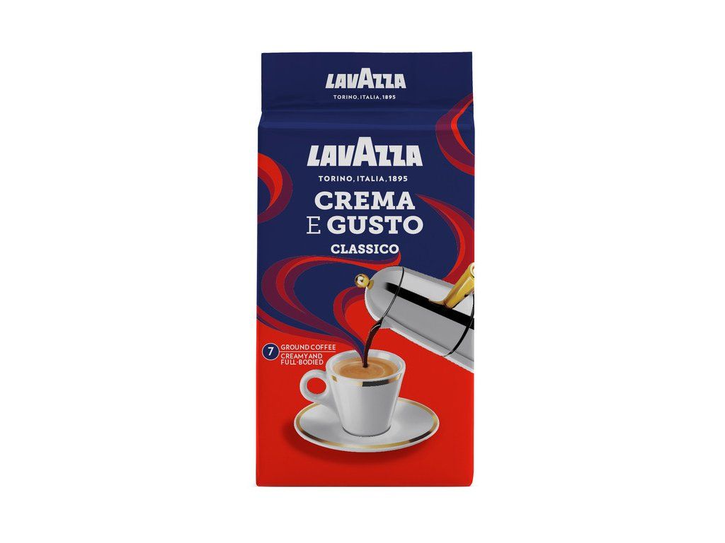 Lavazza Crema e Gusto je pražená v italském Turíně a patří mezi velmi oblíbený druh kávy. Obsahuje směs z 30% arabiky a 70% robusty s výraznou chutí, bohatou a čokoládovou příchutí a příjemným aroma.