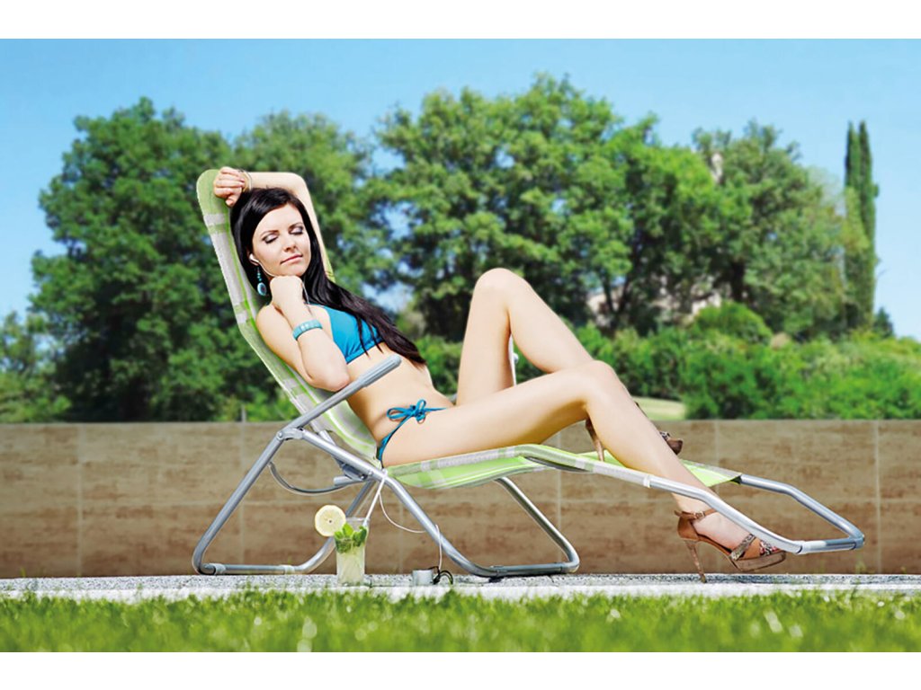 Plážové lehátko je vhodné pro relaxaci na zahradě, chatě nebo u bazénu.
