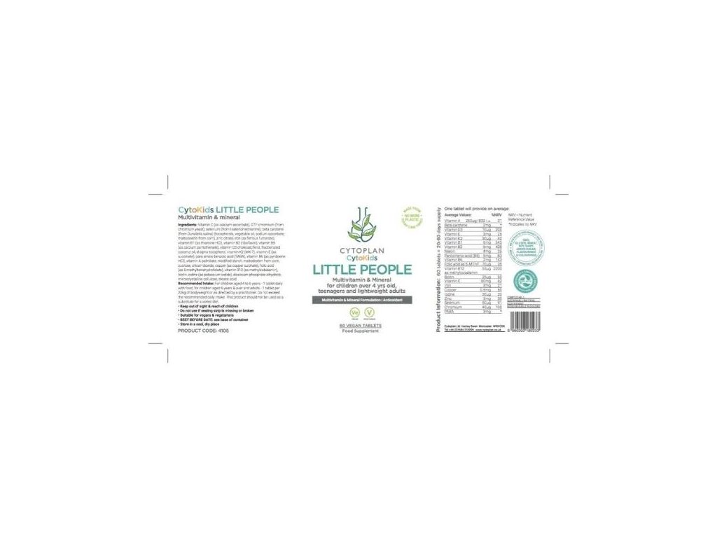 Je pro vás náročné, aby vaše dítě mělo dostatek vitamínů a minerálů ze stravy, i když se snažíte nejvíce jak se dá, rozmanitou a výživnou stravou?Doplněk stravy Little People značky Cytoplan obsahuje hladiny vitamínů skupiny B, vitamínu D, A, C a stopových minerálů, které jsou důležité pro správný růst, vývoj dětí a posílení imunity. Složení bylo nedávno vylepšeno o vitamin B12 v aktivní formě methylkobalaminu s lepší vstřebatelností oproti jiným formám B12. Vitamíny a minerály jsou v praktické velmi malé tabletě, proto se snadno užívají.