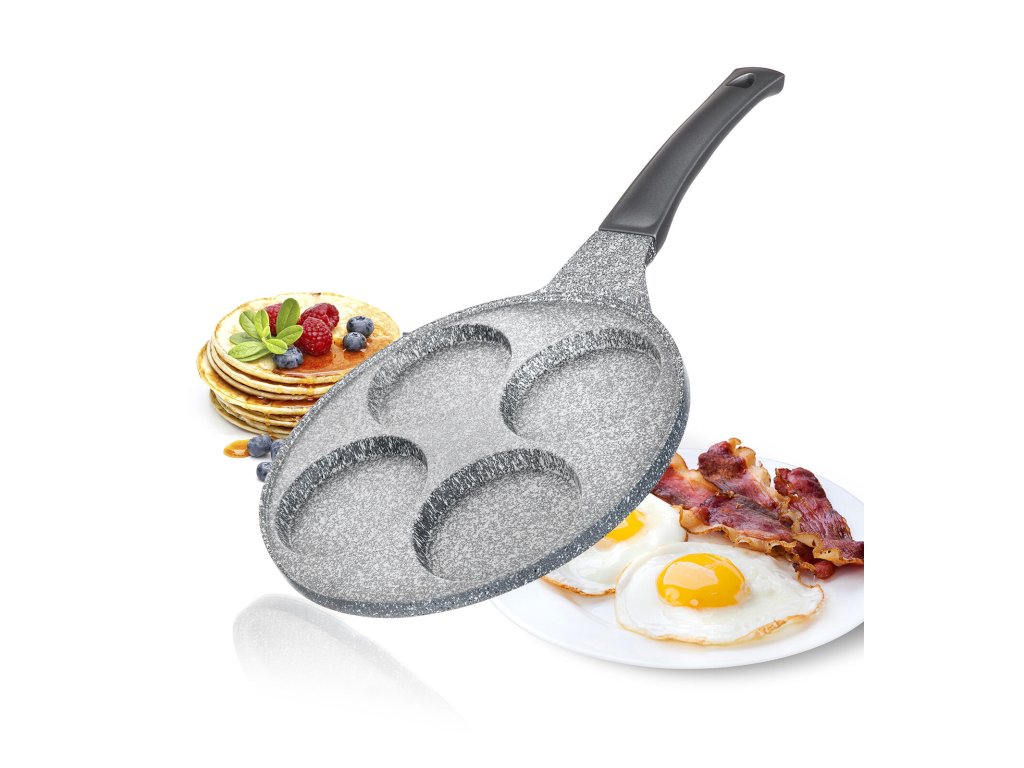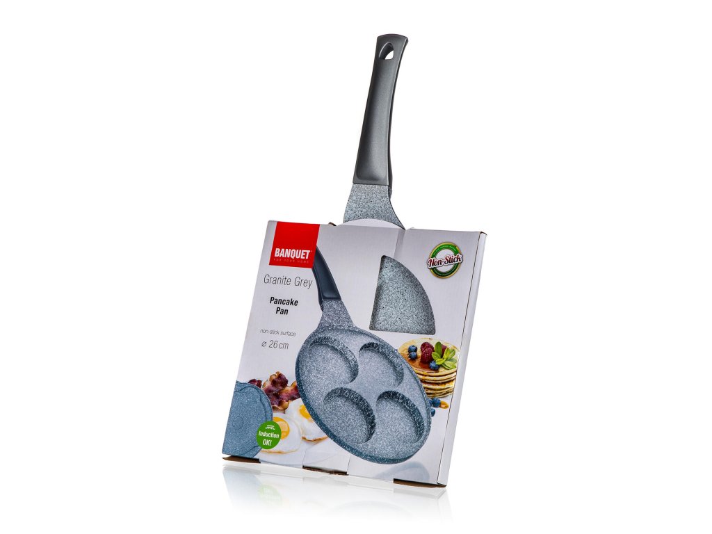 Litá hliníková pánev na lívance GRANITE Grey, s indukčním dnem a vnitřním nepřilnavým povrchem, je vhodná na přípravu lívanců a vaječných omelet s minimální potřebou tuku.