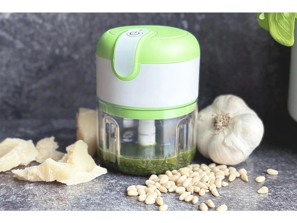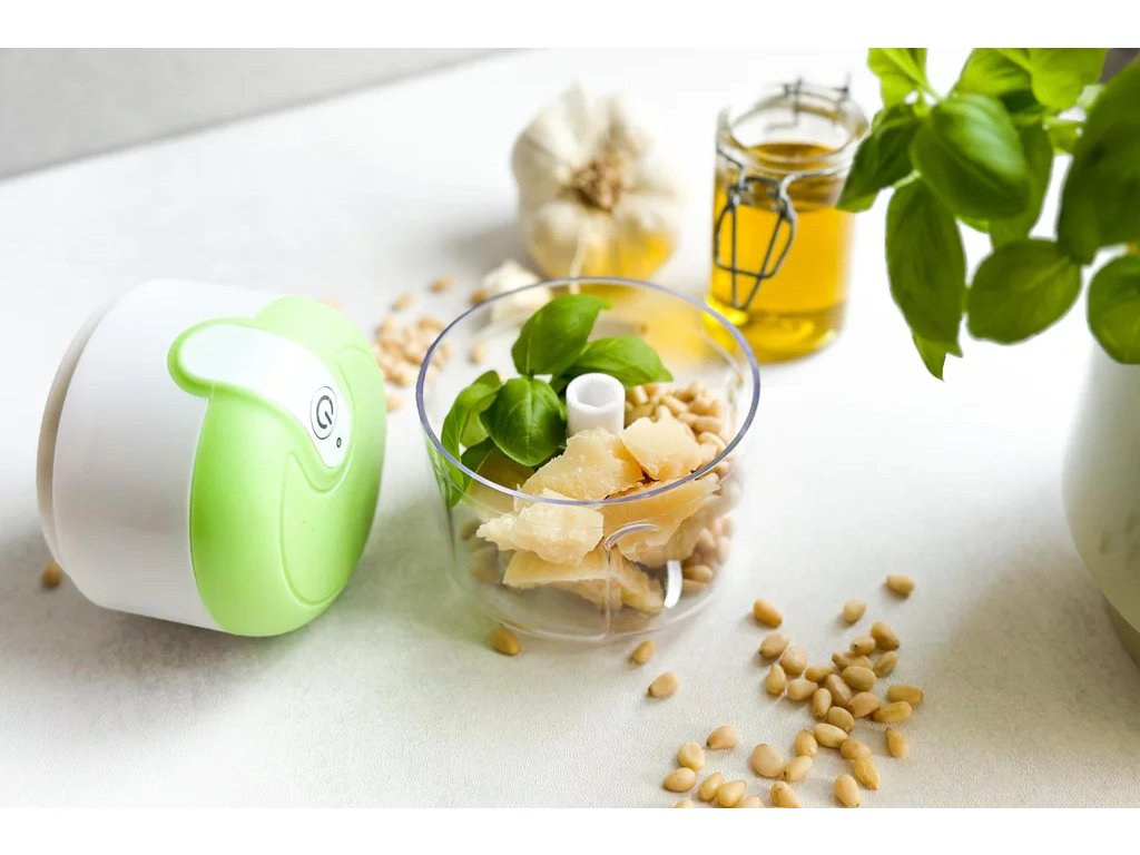 Pohodlné ovládání jednou rukou umožňuje čerstvě, rychle a jednoduše nakrájené potraviny stisknutím jednoho tlačítka. Livington 3 Seconds Chopper je bezdrátový a vejde se do každé zásuvky, což z něj dělá ideálního pomocníka do malých kuchyní.S tímto multisekáčkem vykouzlíte pesto, dětskou výživu, dresinky, salsu a mnohem více - vše za pouhé 3 sekundy! Vysoce kvalitní čepele z nerezavějící oceli jsou odolné a snadno se čistí. Livington 3 Seconds Chopper má jednoduché nabíjení přes USB - včetně nabíjecího kabelu micro-USB - a při každodenním používání vydrží jedno nabití baterie několik týdnů. Navíc nádobu, ochranu proti postříkání vodou a čepele můžete mýt v myčce nádobí, což zjednoduší čištění.Livington 3 Seconds Chopper - Multisekáček vám ušetří čas a usnadní vaření. Za chvíli připravíte suroviny na vaše oblíbené pokrmy - a to všechno jediným stisknutím tlačítka. S tímto multisekáčkem už nikdy nebudete muset ztrácet čas s ručním krájením a drcením potravin.