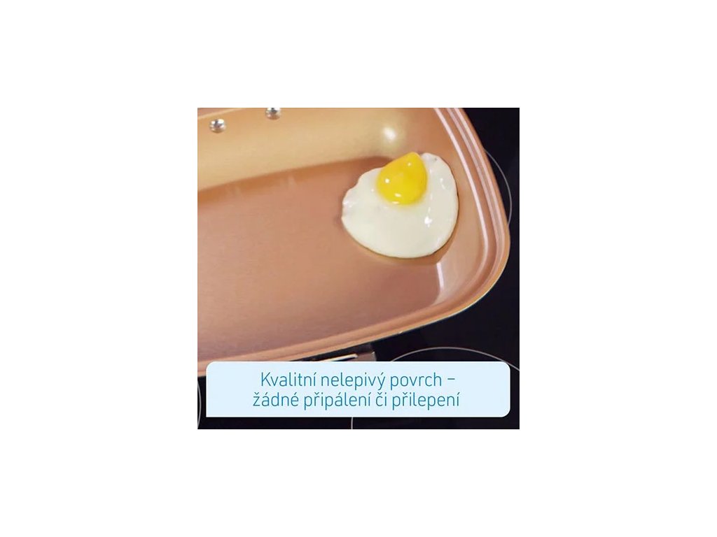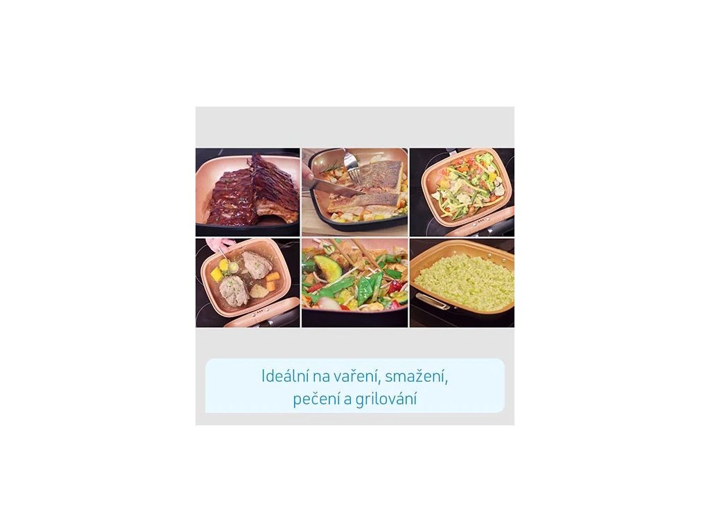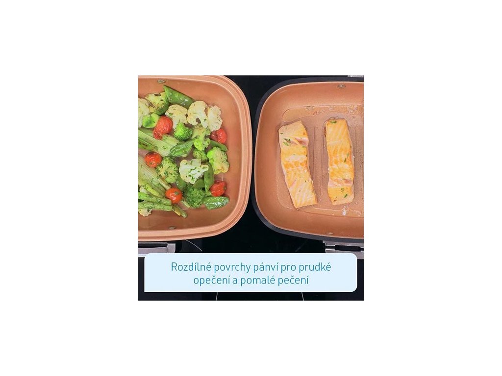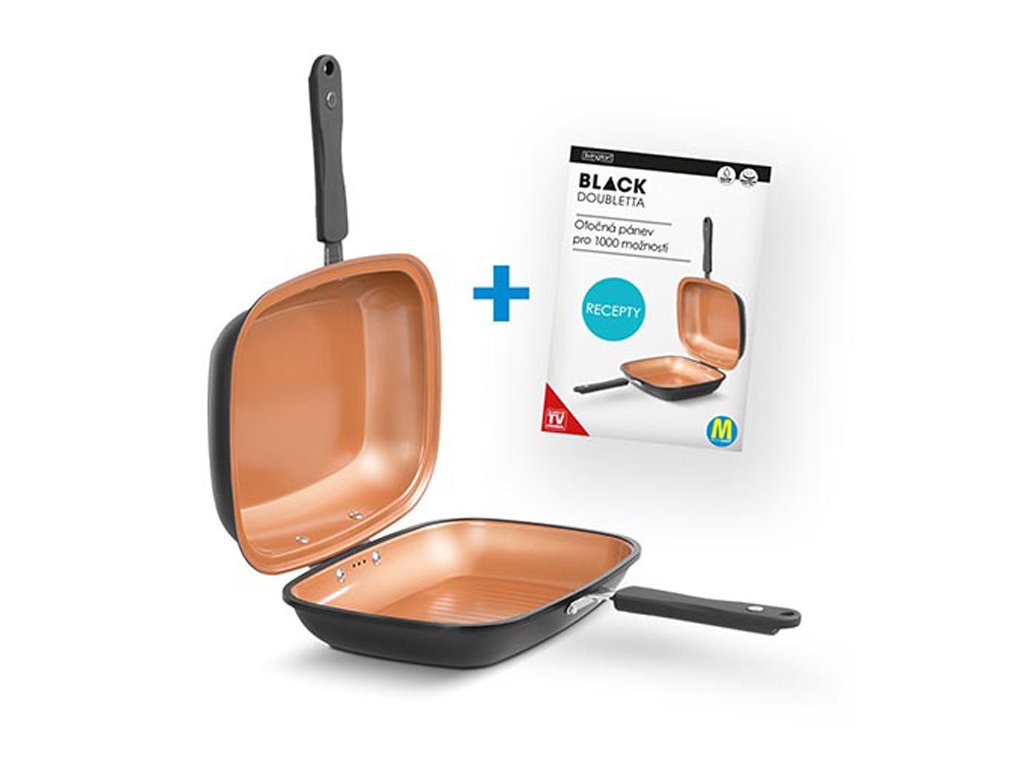 Chaos mezi pánvemi ve Vaší kuchyni nemá konce kraje, a na poličce už také nemáte žádné volné místo? Zapomeňte na všechny ty staré hrnce a pánve! Máme pro Vás revolučně nový, kuchyňský systém Livington Black Doubletta! Livington Black Doubletta je inovativním vylepšením milion krát prodaného kuchyňského hitu Doubletta. V čem spočívá tajemství nové Livington Black Doubletty? Čtverečný tvar Vám zajistí dostatek místa při vaření a umožní Vám přípravu dvou pokrmů najednou. Livington Black Doubletta má extrémně odolné dno, které ukládá teplo na obou stranách, pro ještě lepší výsledky. Díky propracované cirkulaci se teplo uvnitř pánve rozloží kolem Vašeho jídla rovnoměrně, například při šetrném, pomalém dušení, či vaření v páře, nebo také při grilování. Ergonomická rukojeť s inovativním magnetickým uzávěrem Flexibilní, silikonové těsnění a ergonomická ručka s geniálním magnetickým uzávěrem drží pánev pevně uzavřenou. Tím je zaručeno perfektní vařní prostředí. Nadbytečná pára se vypaří otvory k tomu určenými. Vařte mnohem šetrenejšie Jinak, než u běžných varých systémech, můžete Livington Black Doublettu kdykoliv během přípravy jídel otevřít: například když chcete jídlo dochutit kořením, podlít vodou, nebo prostě jenom ochutnat! Takto budete vařit mnohem šetrněji, pod nišším tlakem. Vaše jídla budou chutnat intenzivněji a na jejich úžasnou chuť určitě nezapomenete! A navzdory všemu vaříte pomocí Livington Black Doubletta mnohem rychleji, než s kteroukoliv jinou pánví. Povrch pánve je potažen nepřilnavou vrstvou, díky níž se nic nepřilepí, ani nepřipálí. Všechny části pánve můžete umýt i v myčce na náobí. Praktická a univerzální Pánev je vhodná pro použití na všech druhů sporáků: plynový, keramický, elektrický a indukční. Stáhněte si i náš receptáreň a připravte si chutné a lahodné jídla pomocí otočné pánve Livington Black Doubletta.Doplňkové parametry