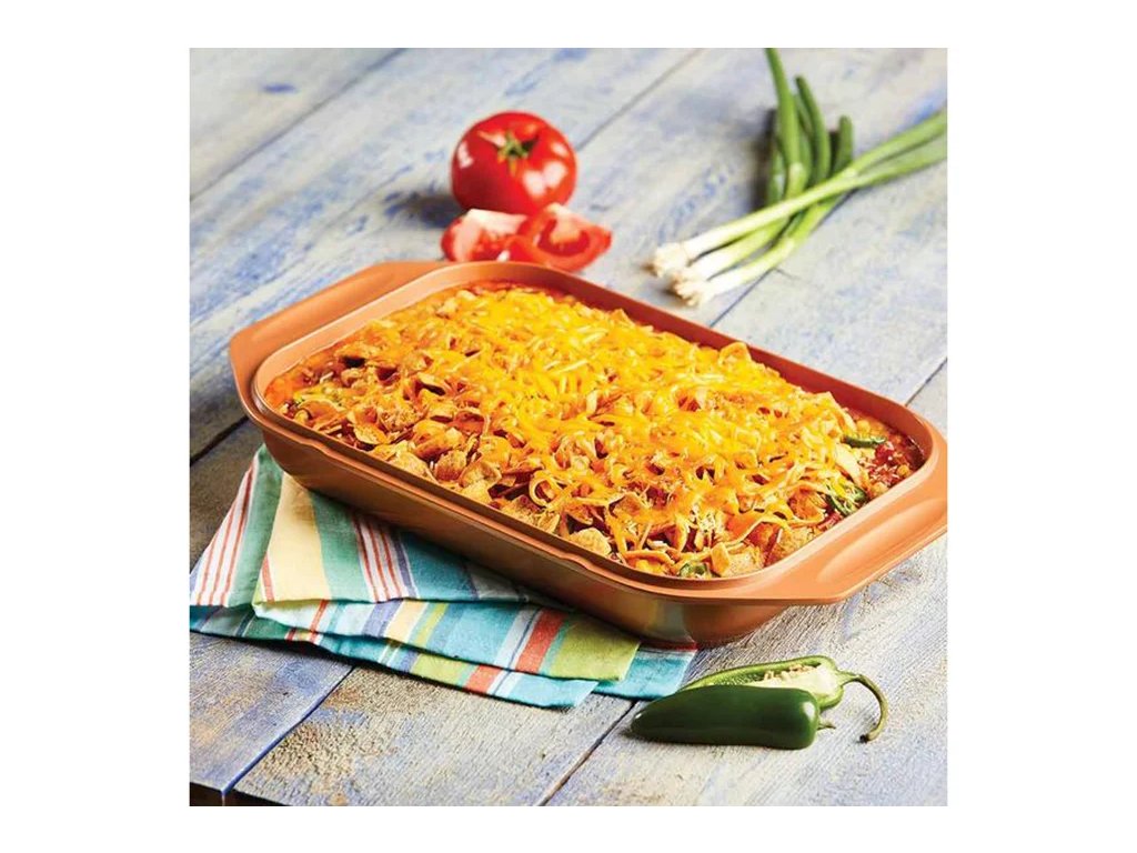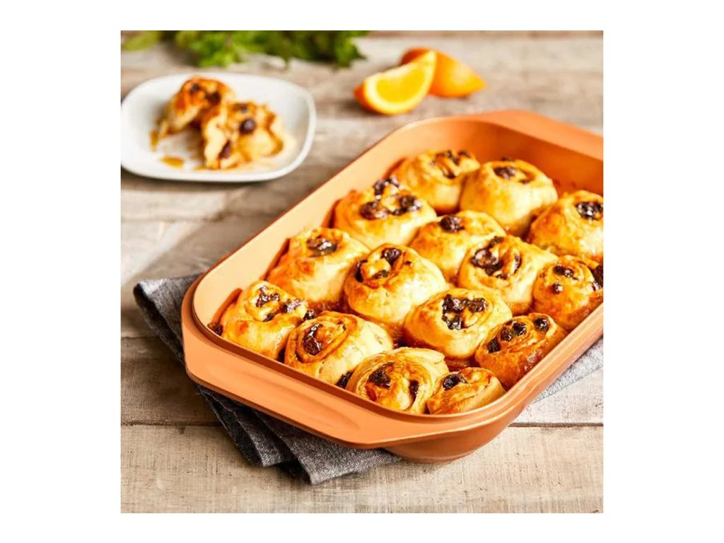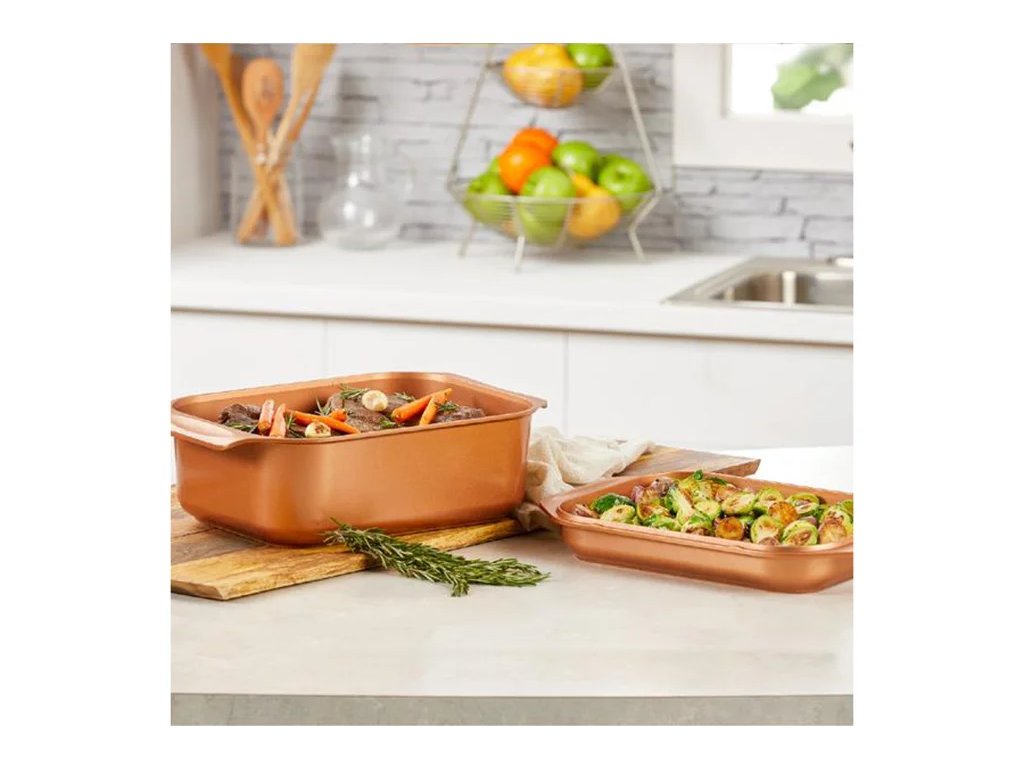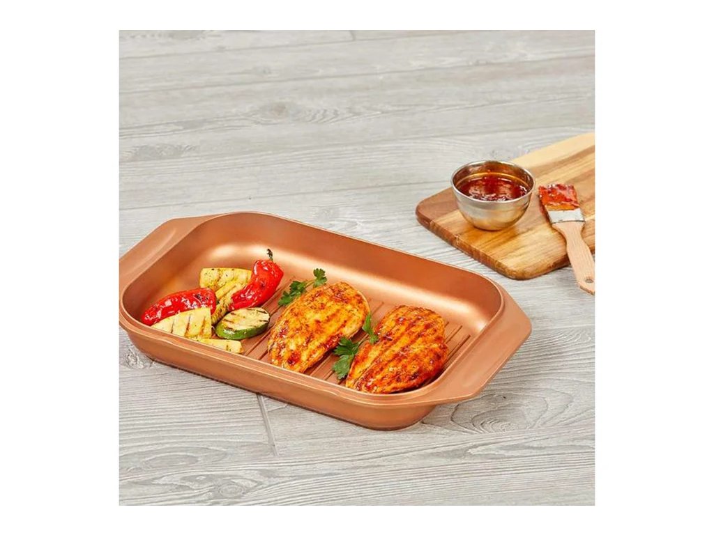 S WonderCookerem můžete připravovat pokrmy jako hluboký pekáč, holandskou troubu, hrnec, pánev, fritézu, pomalý hrnec, parní hrnec, kastrol, ohřívací mísa, zapékací mísa, grilovací pánev a mnoho dalšího. Jeho unikátní dvojitý pekáč - poklice vám umožní používat ho i jako grilovací pánev nebo při dušení. S WonderCookerem můžete připravit až 7 kg krocana pro celou rodinu a to díky extrémní tepelné odolnosti až 450 ° C. Je vhodný pro všechny typy sporáků a navíc neobsahuje žádné zdraví škodlivé látky. Díky lehkému litému hliníku a povrchu CeramiTech se nic nelepí a skleněná poklice udržuje chuť, vůni a šťávu ve vašem jídle. WonderCooker je opravdovým kuchařským partnerem, který vám usnadní vaření a zlepší chuť vašich pokrmů. Obsah balení: 1 x Livington Copperline WonderCooker 1 x Grilovací pánev 1 x Skleněná poklice 1 x Copper Crisper 1 x Brožura s recepty Pokyny k péči / čištění: Doporučuje se mýt každou část ručně vodou, jemným mýdlem nebo čistícím prostředkem a měkkou houbou, aby se zajistila dlouhá životnost nátěru. Díly Livington Copperline WonderCooker jsou vhodné i do myčky na nádobí, ale pro delší životnost se doporučuje šetrné čištění. Recepty ke stažení zdarma: Stáhněte si knihu receptů od Mediashop a uvařte si ty nejlepší jídla - Recepty ke stažení zde