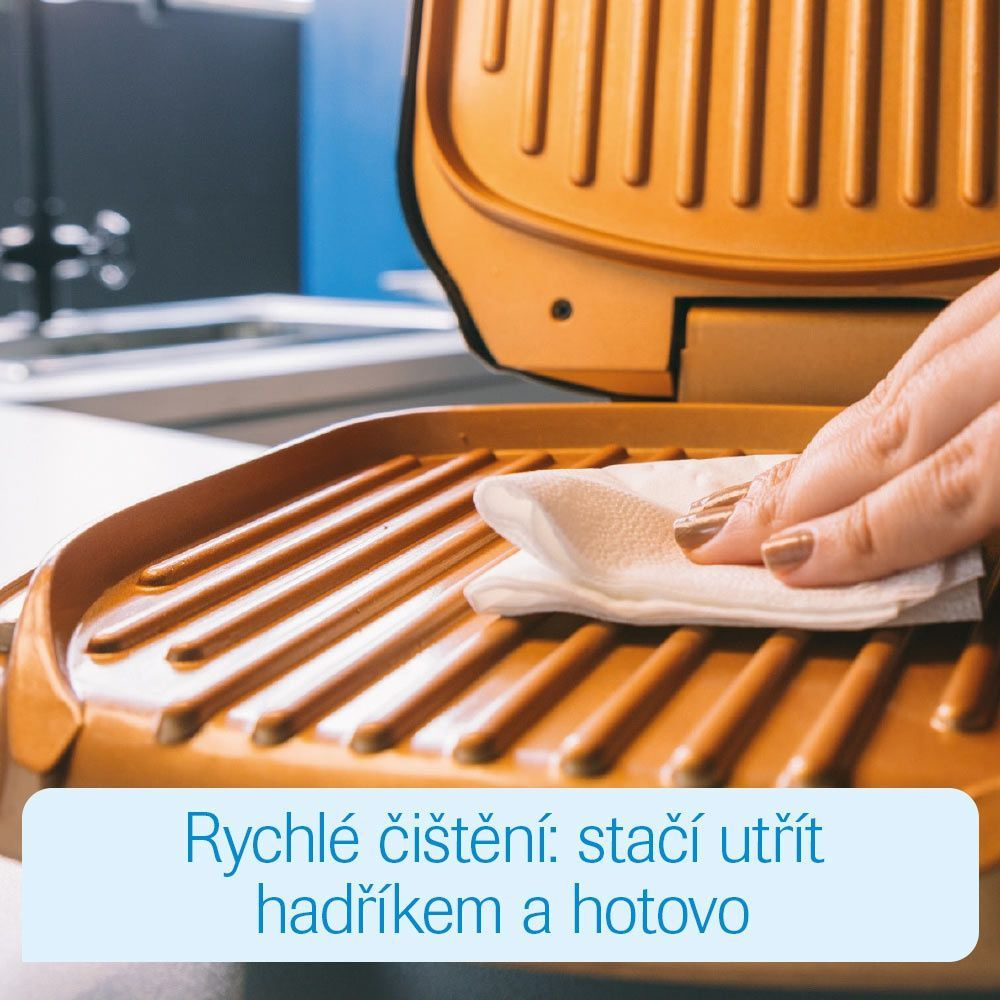 Elektrický gril se dvěma topnými tělesy Jídlo se opéká zároveň zhora i zespodu a díky tomu ho nemusíte otáčet Přebytečný tuk odtéká do odnímatelné sběrné misky Kvalitní povrch ze směsi mědi, keramiky a titanu zabraňuje připékání Maso, ryby i zeleninu budete připravovat rychleji a zdravěji Příkon 900 W Vyjímatelný rošt / deska Ne Délka přívodního kabelu 1,8 m Barva Černá/hnědá