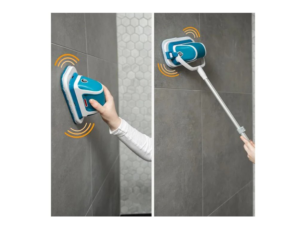 Ergonomický design Systém 2 v 1 EasySwitch vám usnadní práci: můžete jej používat ručně nebo pomocí teleskopické tyče! S prodlužovací rukojetí s ním můžete vyčistit sprchový kout nebo dokonce podlahu is malým množstvím čistícího prostředku. ✔ Čištění je možné provést několika pohyby, aniž byste se museli ohýbat nebo stát na židli, protože teleskopická tyč umožňuje snadno dosáhnout nízká nebo vysoká místa. Na každý povrch ten správný návlek: Livington Multi Scrubber je k dispozici se dvěma různými návleky, které můžete snadno vyměnit: Nylonový návlek: ideální pro varné desky, pracovní desky, sporáky, umyvadla, sprchové vaničky, vany, zahradní nábytek, bazény, podlahové a stěnové dlaždice. Měkký návlek z mikrovlákna: vhodný pro citlivé povrchy, jako je sklo nebo dřevo, např. pro okna, stoly nebo dokonce televizory. ✔ Uklízejte časově efektivně. Domácí práce zvládnete i jednou rukou! Také pro váš zahradní nábytek: Jelikož je bezdrátový, můžete si ho jednoduše vzít s sebou – kamkoli budete chtít – zahradní nábytek není pro MultiScrubber žádnou překážkou! Mimořádně všestranný: Ať už se jedná o koupelnu, bazén nebo dlažbu – MultiScrubber čistí efektivně! Bezkonkurenční účinnost: Celou řadu oken vyčistíte s minimem čistícího prostředku, ručně nebo pomocí teleskopické tyče! Hygienická a bezvadná čistota: Ať už se jedná o troubu nebo keramiku, můžete je jednoduše a snadno vyčistit! Lehký jako pírko: Čištění zvládnete snadno jednou rukou, stačí pár kapek čistícího prostředku a zbavíte se nečistot za polovinu času. Praktická teleskopická tyč: Chrání záda a kolena - lze ji prodloužit na 105 cm. Těžko dostupná místa? To také není problém! Pomocí systému 2 v 1 EasySwitch vám pomáhá při vaší práci: můžete jej používat ručně nebo pomocí teleskopické tyče! S prodlužovací rukojetí s ním můžete vyčistit sprchový kout nebo dokonce celou řadu oken is malým množstvím čistícího prostředku. ✔ Nemusíte se ani natahovat, lze jej otočit o 180° pro flexibilní použití.