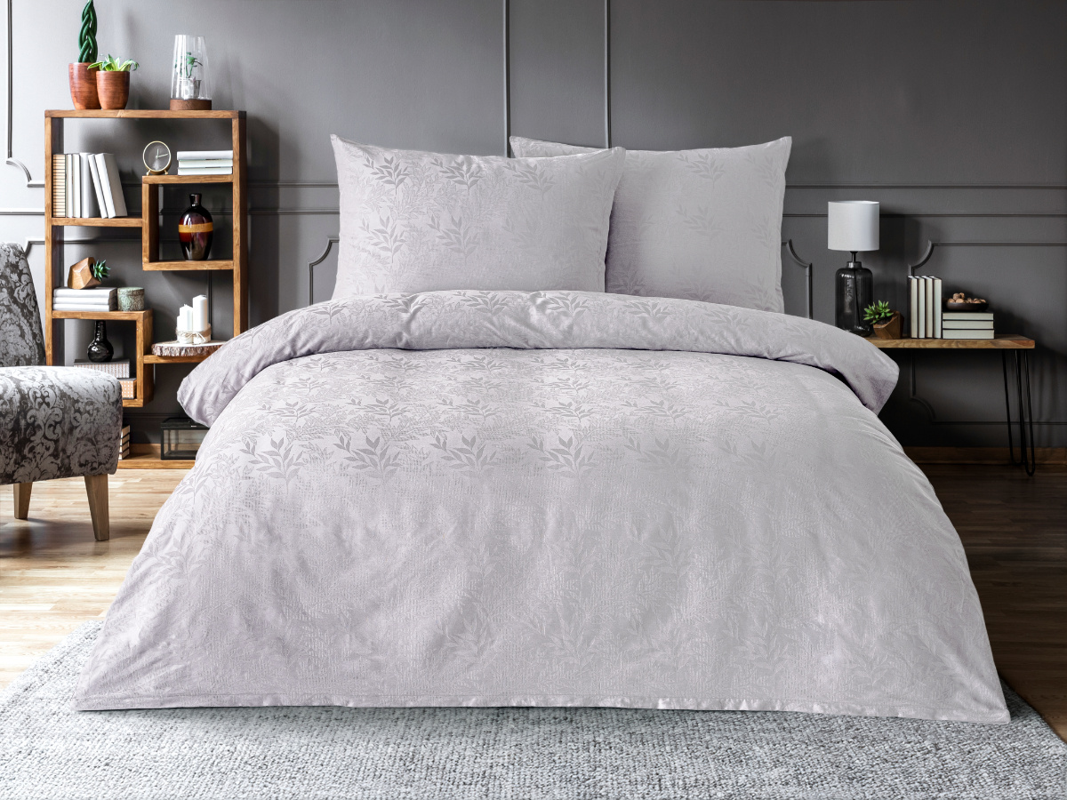 Luxusní žakárové povlečení 140x200, 70x90cm listy světle šedé