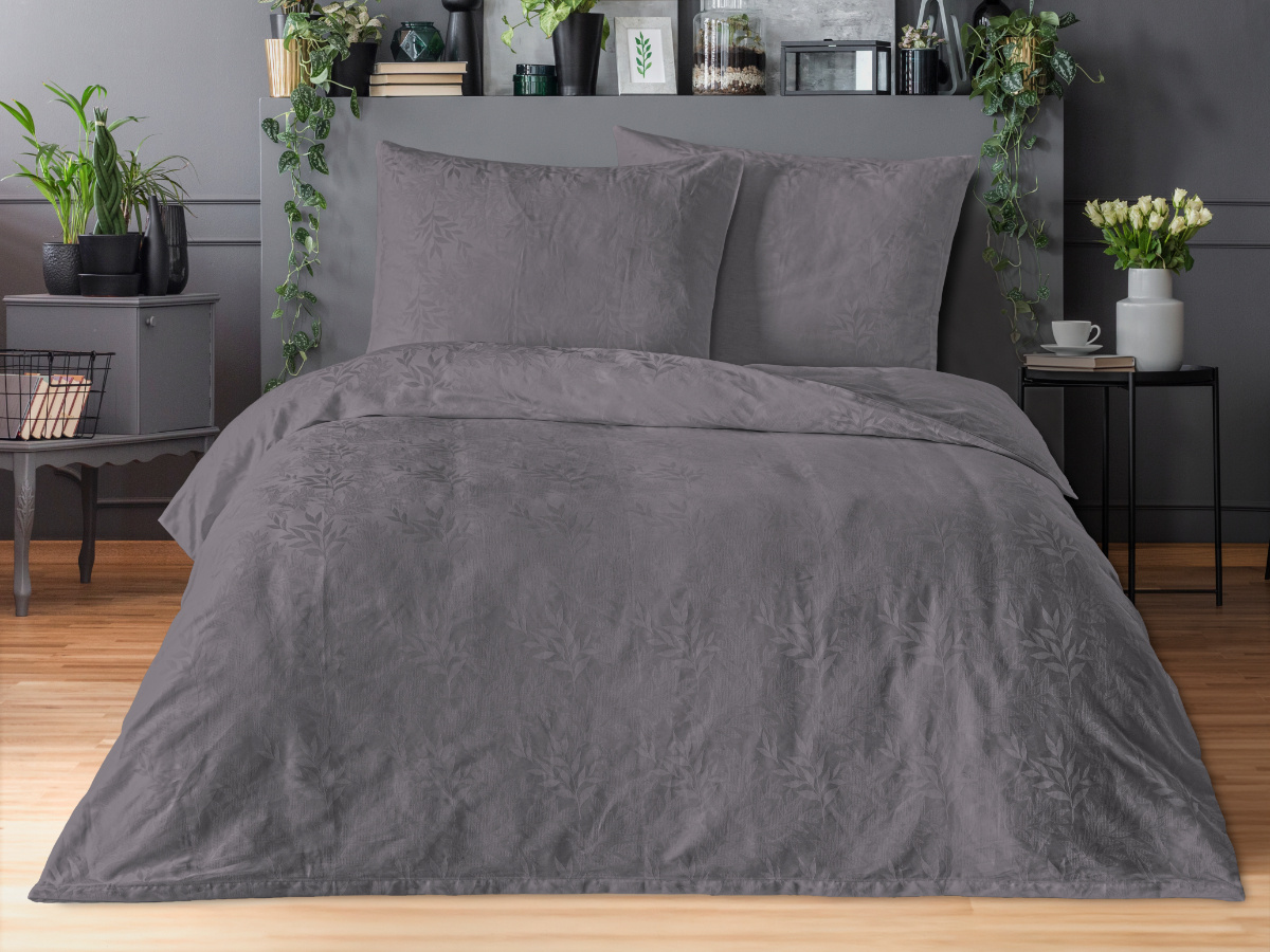 Luxusní žakárové povlečení 140x200, 70x90cm listy tmavě šedé