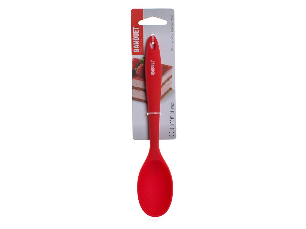 Silikonová lžička 20,8 cm CULINARIA Red je praktický pomocník s širokým využití v kuchyni při vaření, zadělávání těst, míchání krémů, omáček, atd. Náčiní ze silikonového materiálu je ideální při používání nádobí s nepřilnavým povrchem. Pevnost lžičky zajišťuje uvnitř silikonového materiálu kovová výztuha. Silikon je velmi populární materiál, který pro své jedinečné vlastnosti našel své uplatnění i v kuchyni. Vyrábí se z něj různé druhy forem na pečení, vály a válečky na těsto, stěrky, mašlovačky, různé druhy kuchyňského náčiní a mnohé další výrobky. Silikon je odolný vysokým teplotám (do 230 st. C).