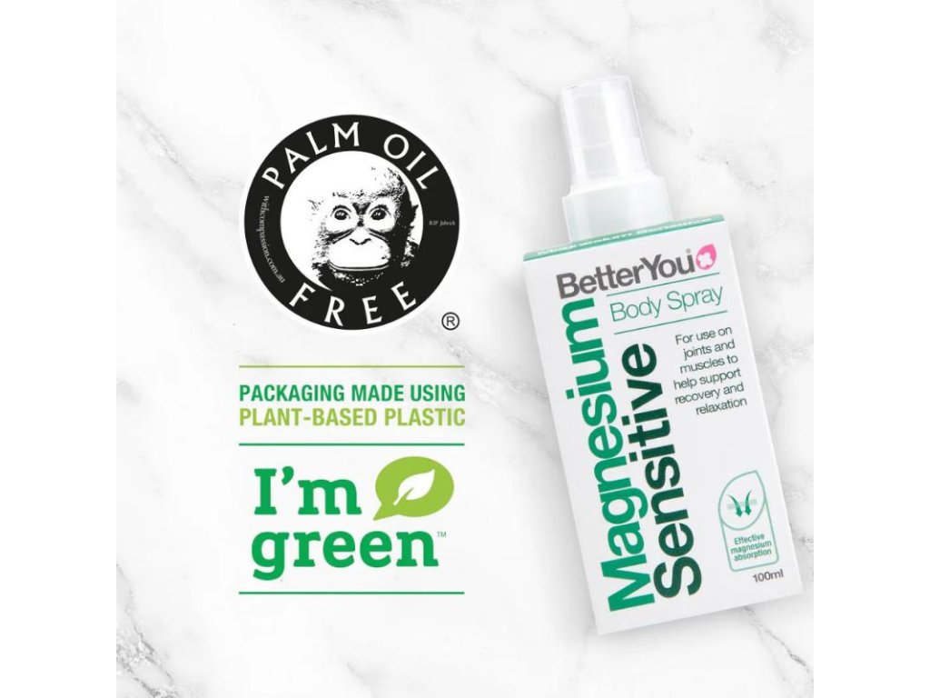 Rychlý a efektivní způsob aplikace magnézia transdermálne. Vhodný nejen pro citlivou pokožku dospělých, ale i pro ty nejmenší. BetterYou magnéziový sprej se začne vstřebávat okamžitě po nastříkání na pokožku. Hořčík použitý v tělovém spreji byl přirozeně čištěn po dobu 250 milionů let, aby bylo zaručeno, že neobsahuje umělé znečišťující látky a těžké kovy. Pochází z přírodního zdroje, hluboko z přírodní kůry. Garantovaná čistota. Neobsahuje palmový olej.