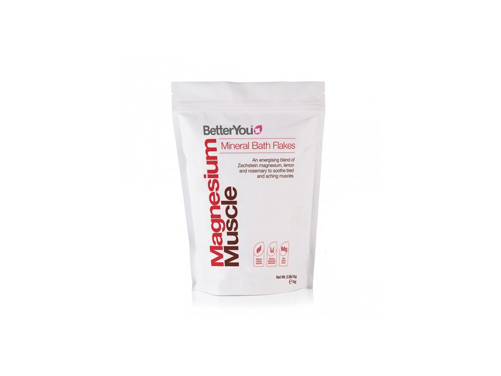 Magnéziové vločky do koupele od BetterYou představují energizující směs chloridu hořečnatého sesenciálními oleji z rozmarýnu a citronu. Tato kombinace přirozeně přispívá k uvolnění a regeneraci svalů a celého těla; ideálně po sportu, tréninku či jakékoli namáhavé fyzické aktivitě.Intenzivní relaxace v podobě hořčíkové koupele od BetterYou Muscle Flakes se zaručeně stane nezbytnou součástí vaší po-tréninkové rutiny. Hořčíková koupel představuje jemnou a efektivní metodu suplementace.