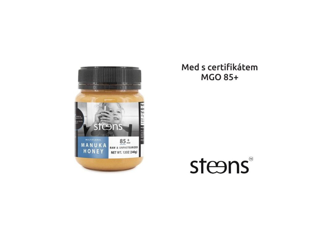 Steens Manuka Honey je nepasterizovaný pravý manukový med z Nového Zélandu. Pochází od včel opylujících Balmín metlatý, keř s bílorůžovými květy pocházející původně z Austrálie a Zélandu, kde mu původní domorodé maorské kmeny daly název Manuka. Med z květů Manuky má výjimečný výživový profil - obsahuje celé spektrum enzymů, aminokyselin, antioxidantů, vitamínů, minerálů a dalších látek s velmi zajímavými vlastnostmi. Manukový med je také známý jako chuťově výraznější, bohatší a plnější než jiné medy. Je to dáno velmi vysokou koncentrací účinných látek.