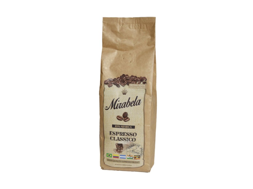 Mirabela Espresso Classico je vyvážená směs několika druhú vysoce kvalitní jihoamerické arabiky a indické robusty.