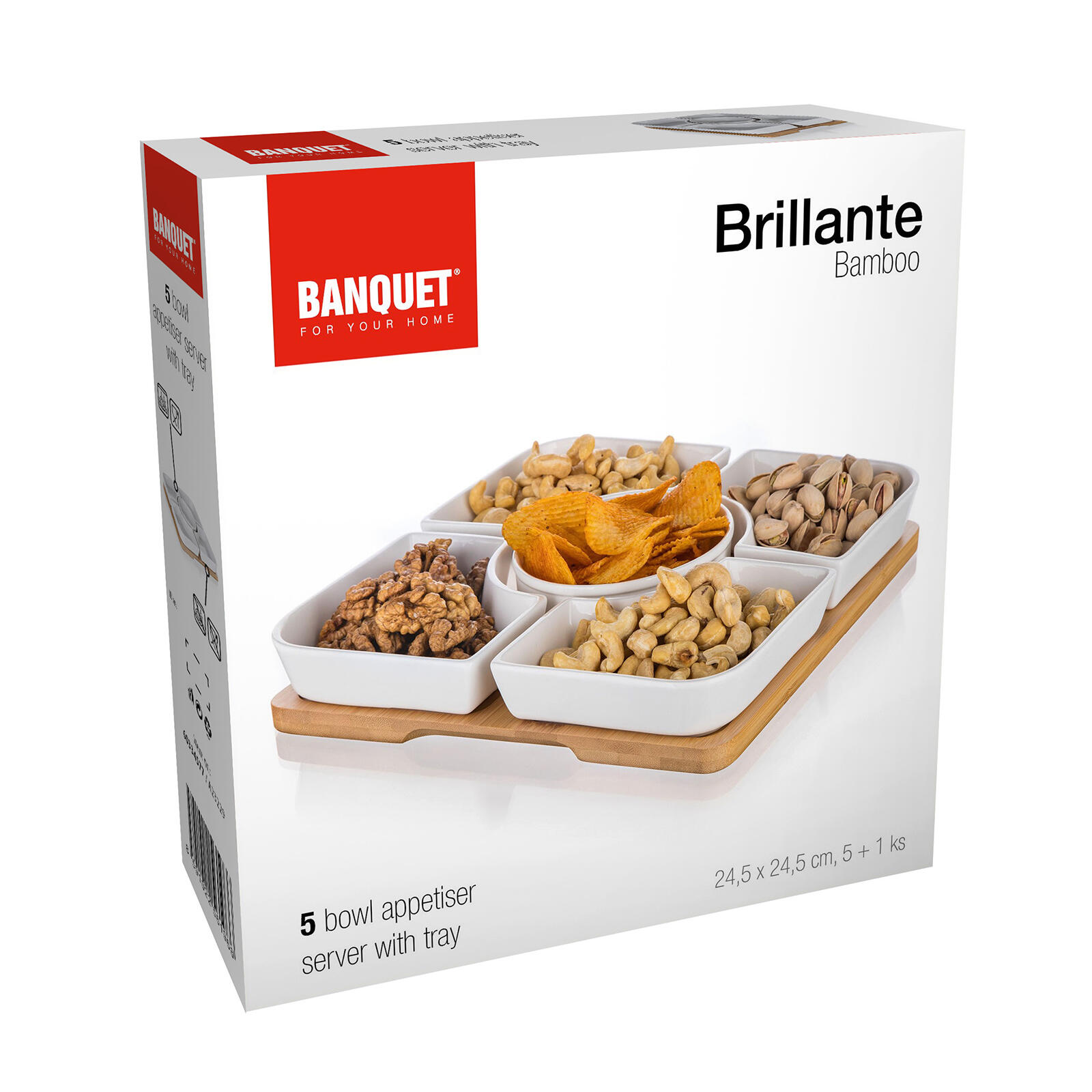 Miska sada 6díl. (5 x miska, 1 x tác) 24,5 x 24,5 x 4,5 cm, porcelán / bambus, BRILLANTE.