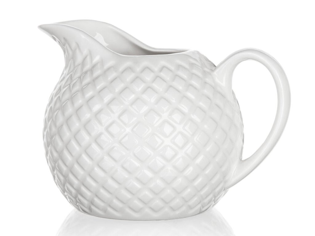 Mléčenka DIAMOND 11,7 x 7,5 cm v barvě bílé se zdobným reliéfem, vyrobená z keramiky.
