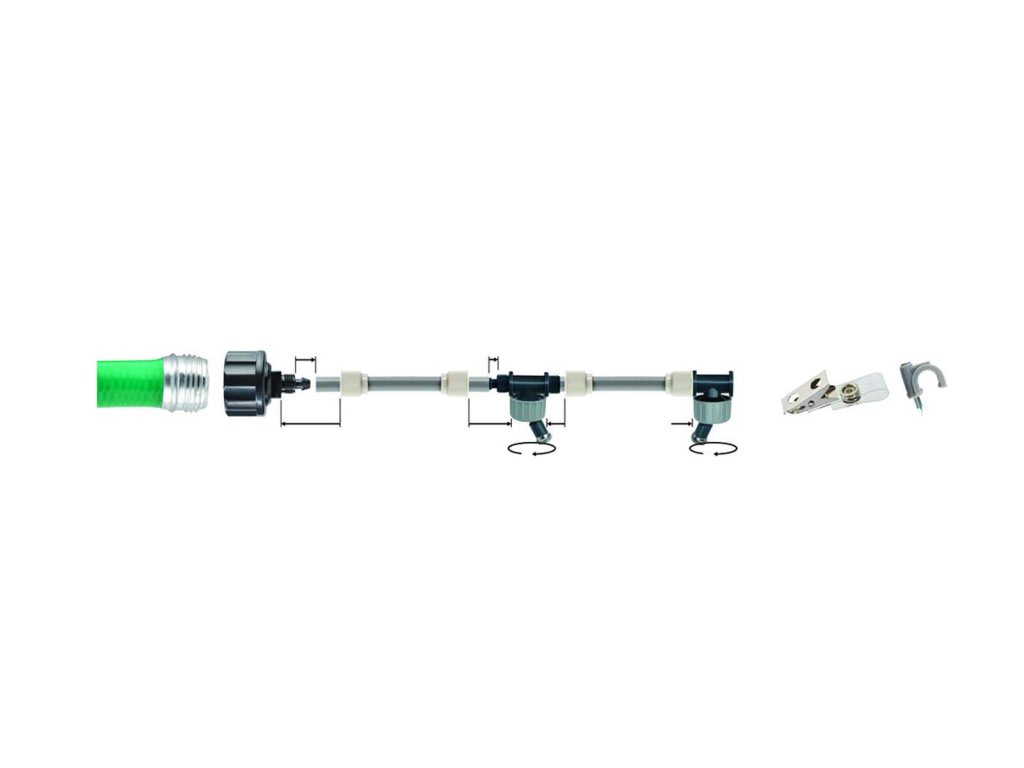 Souprava na vodní mlhu 7,5 m, 5 trysekSada pro vytváření ochlazující vodní mlhy obsahuje 5 mikrotrysek s nastavitelným úhlem působení (z toho jedna koncová), 7,5 metru hadice, jejímž nastříháním je možno umístit trysky dle individuální potřeby, 5 závěsných klipů a adaptér na vodovodní přípojku. Velice rychlou a jednoduchou instalací je možno zvýšit vzdušnou vlhkost v okolí a tím snížit pocitovou teplotu až o 10 stupňů. Vhodné k použití na pergolách, balkonech, terasách, ale i pro zvýšení vlhkosti ve sklenících, nebo prostorech určených pro zvířata. Kvalita fungování závisí hlavně na tlaku v přívodní soustavě, doporučujeme nastavení trysek tak, aby vlhkost nedopadala přímo na osoby či kluzké povrchy, kde je nebezpečí uklouznutí, nebo předměty podléhajícím účinkům vlhka