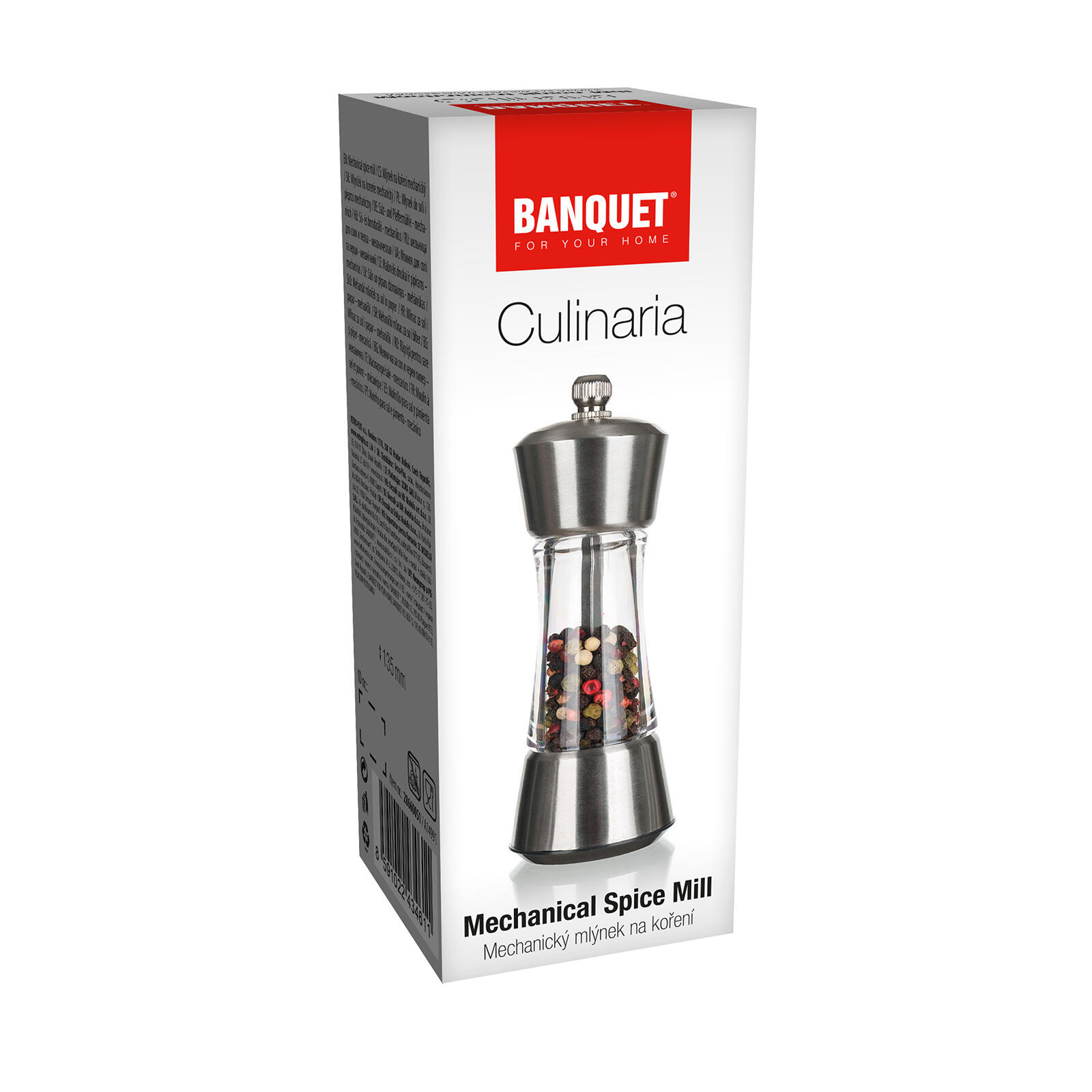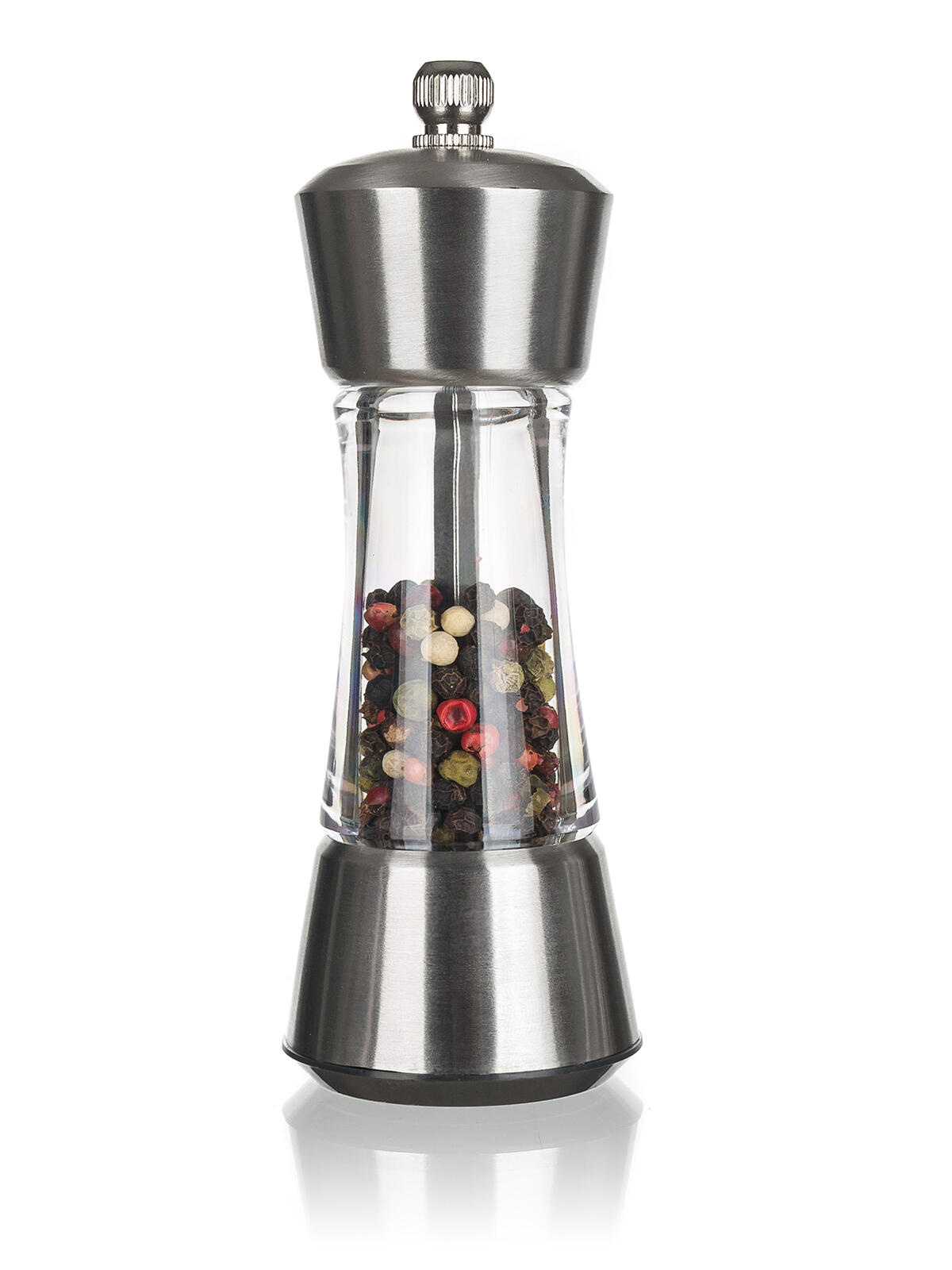 Mechanický mlýnek CULINARIA je dodáván v nerezovém provedení, zásobníky jsou akrylové.