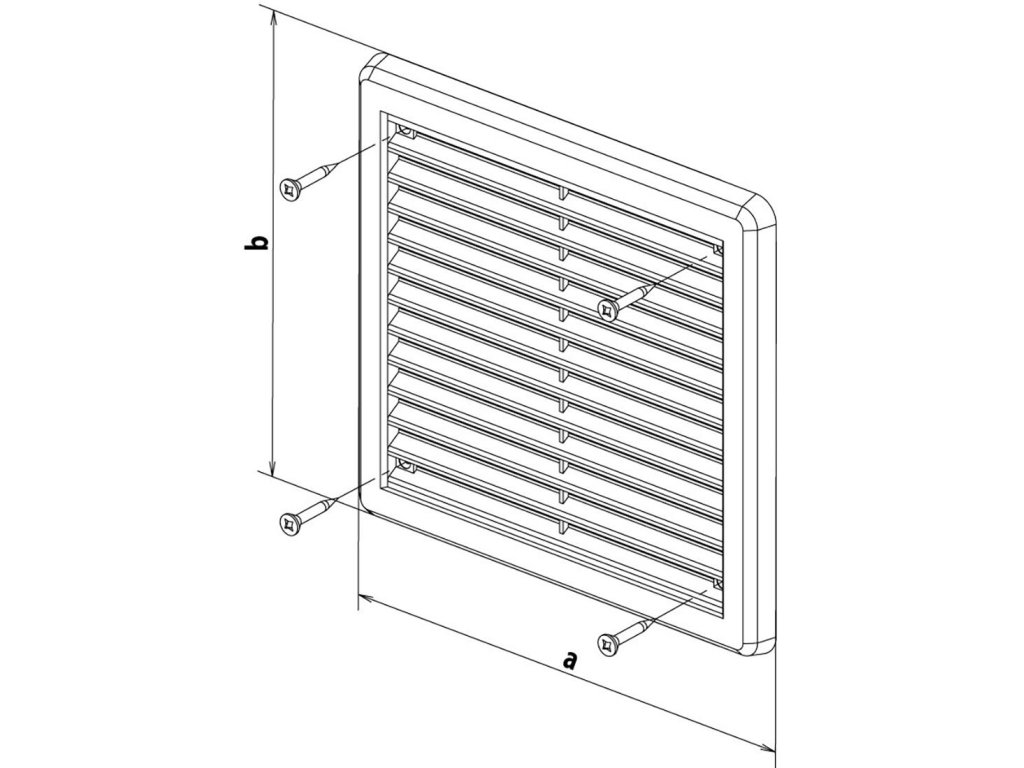 Větrací mřížka je vhodná jak do interiéru tak do exteriéru, na zadní straně je opatřena síťovinou proti drobnému hmyzu.