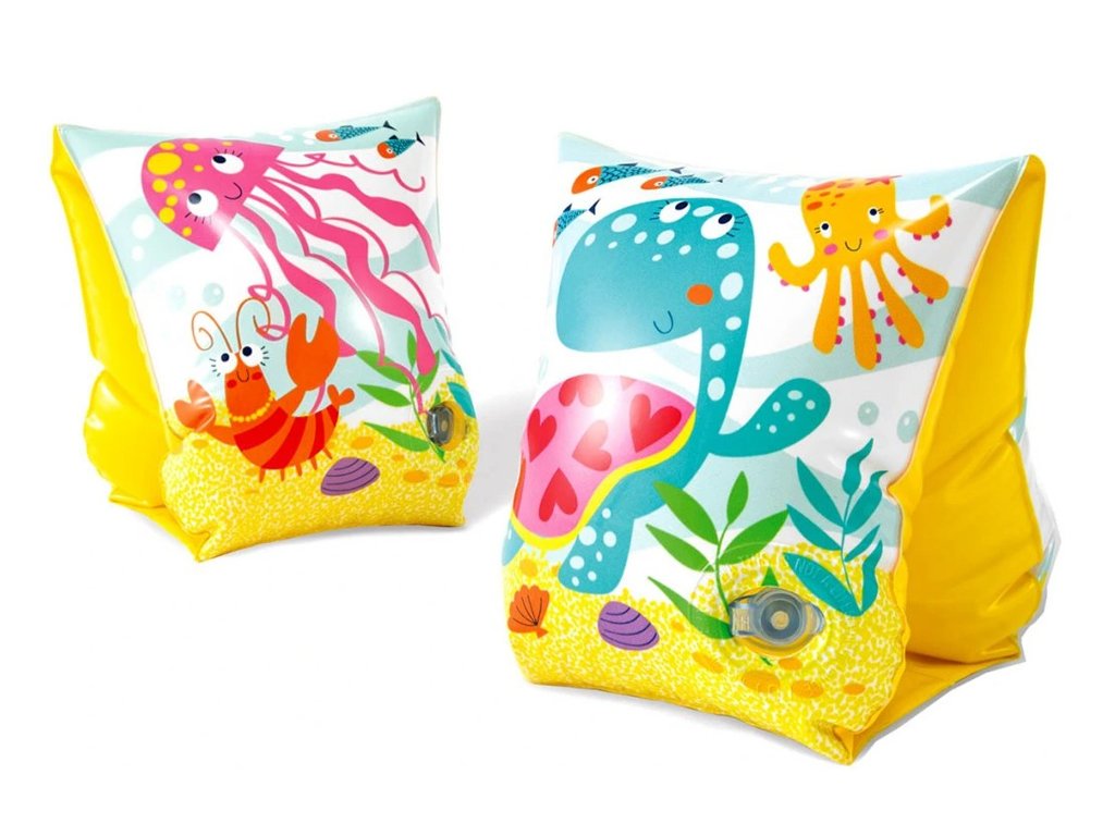 Dvoukomorové nafukovací rukávky s motivem mořského světa jsou ideální pomůckou pro první pokusy dětí s plaváním v mělké vodě. Každý rukávek je vybaven dvěma ventily pro bezpečné a snadné nafouknutí. Atraktivní design mořských zvířátek zaujme každé dítě.