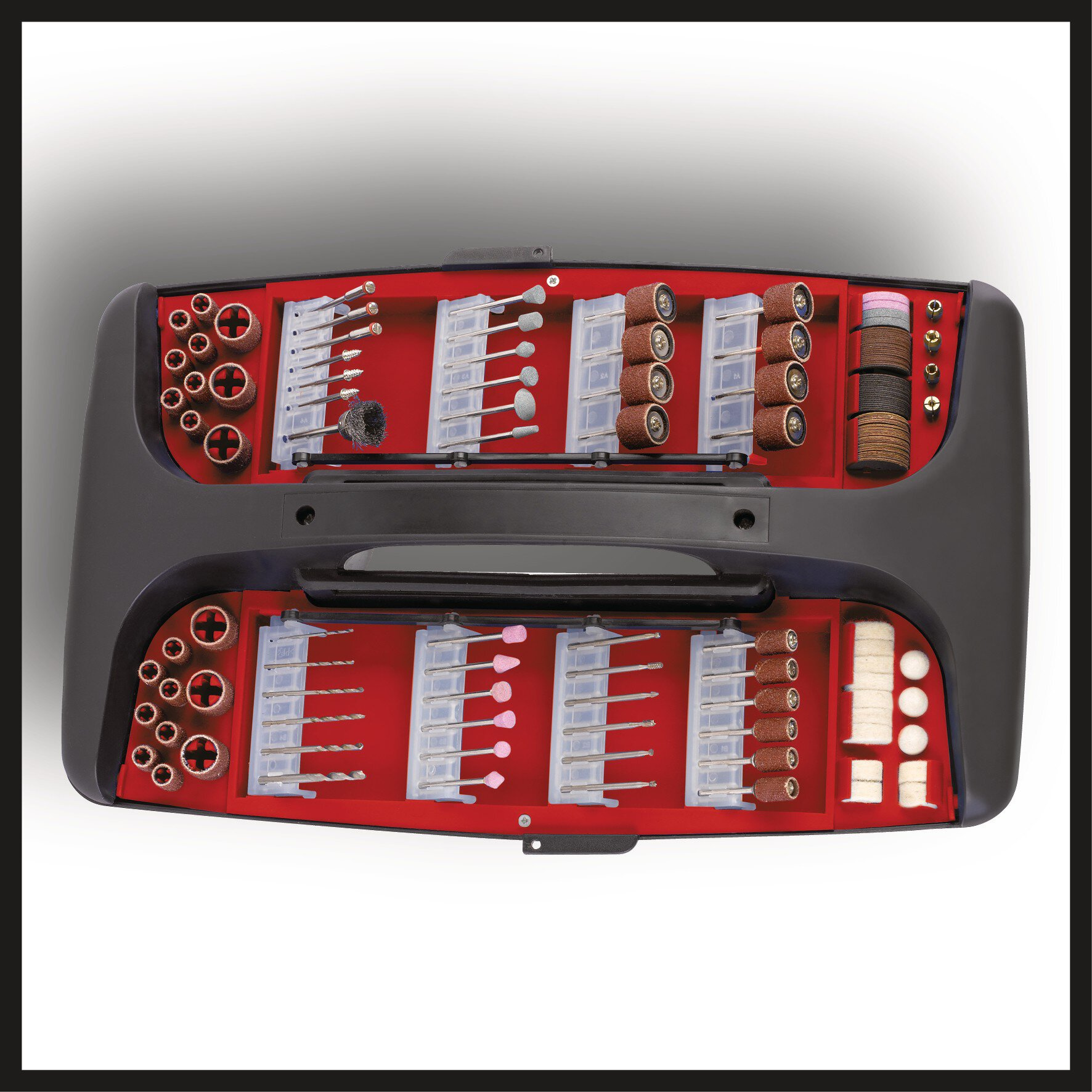 Nástroj pro broušení a gravírování TC-MG 135 E je vysoce kvalitní a kompaktní přístroj, které díky své bohaté nabídce příslušenství nabízí širokou škálu různého použití při vrtání, frézování, broušení a kartáčování. Díky aretaci vřetena lze různé nástavce rychle a snadno vyměňovat. Elektronická regulace otáček zajišťuje jemný rozběh a umožňuje přesné přizpůsobení výkonu danému úkolu. TC-MG 135 E má flexibilní hřídel, která umožňuje elegantní a snadné opracování nejrůznějších částí obrobku. Pomocí teleskopického stojanu a příslušného háčku lze navíc během práce elegantně namontovat nástroj. Díky měkkému úchopu a ergonomickému designu se přístroj velmi dobře drží. Součástí dodávky je také rozsáhlá, 189dílná sada příslušenství pro broušení, vrtání, frézování a pro mnoho dalších činností a vše je uložené v praktickém úložném boxu.