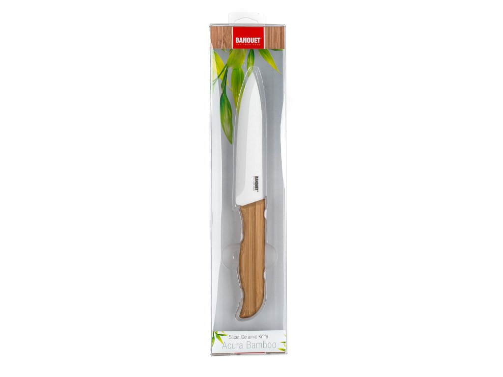 Nůž porcovací keramický ACURA BAMBOO, bambusová rukojeť.