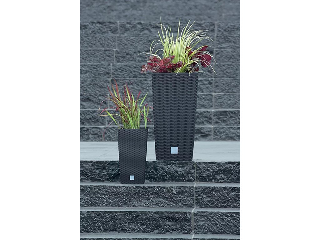 Květináč věrně napodobuje strukturu přírodního ratanu.